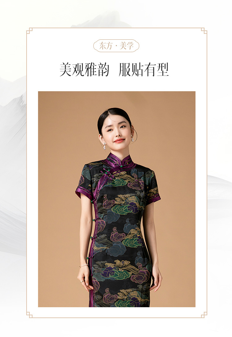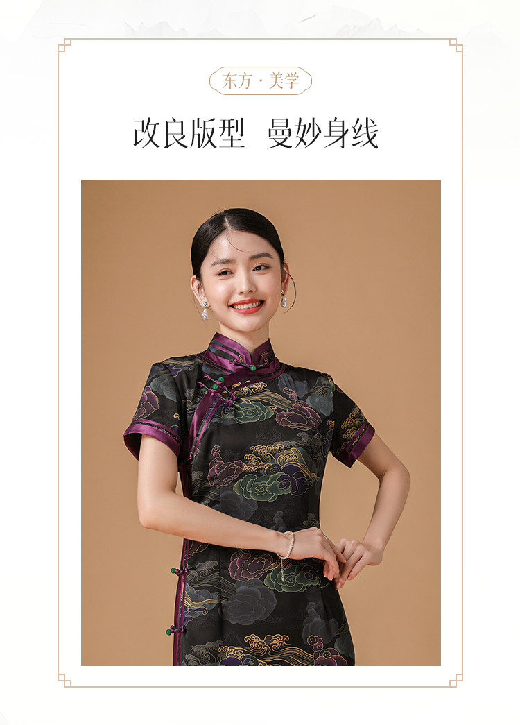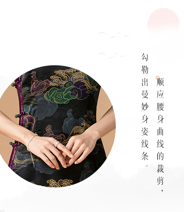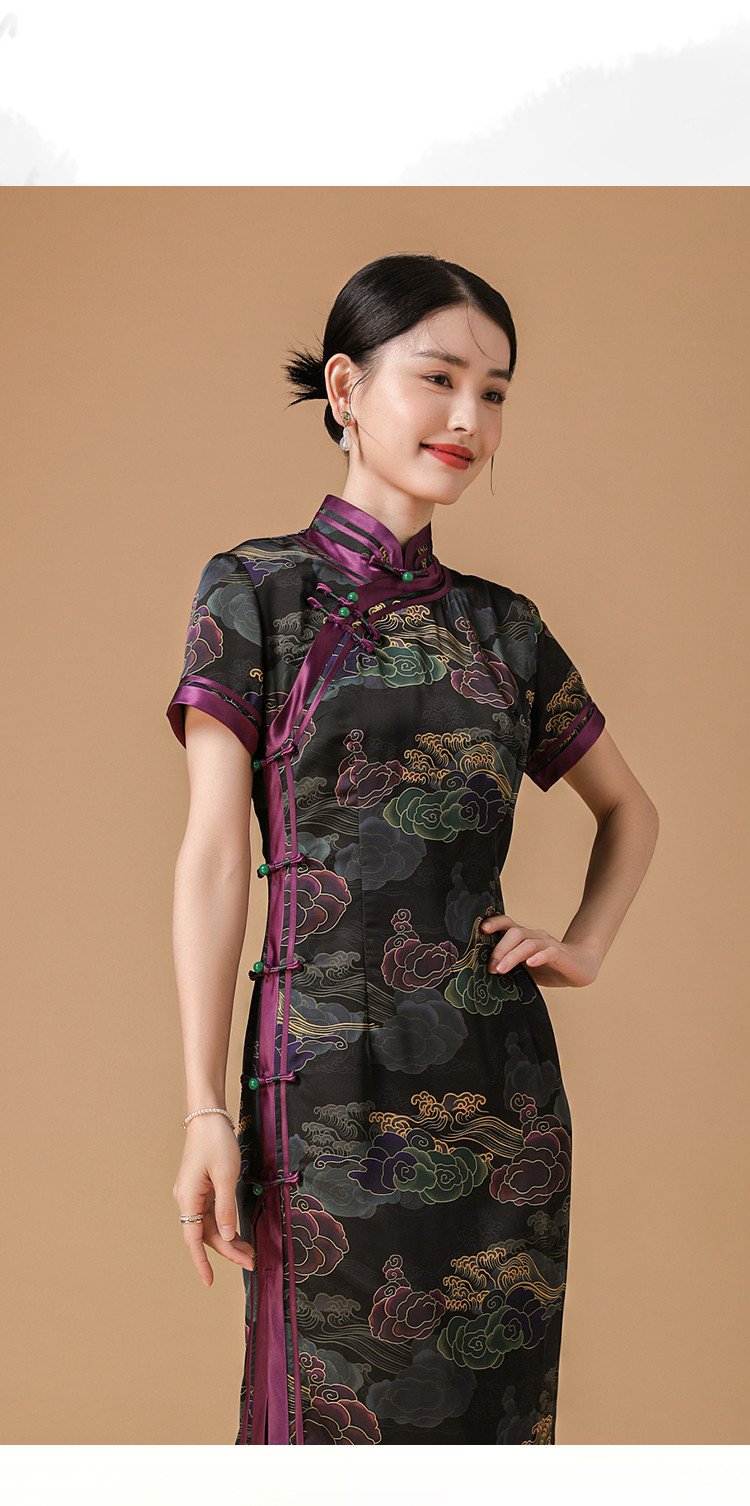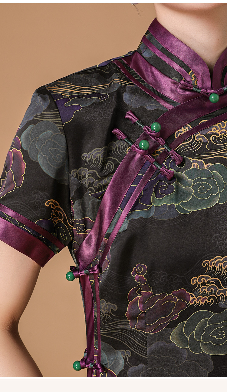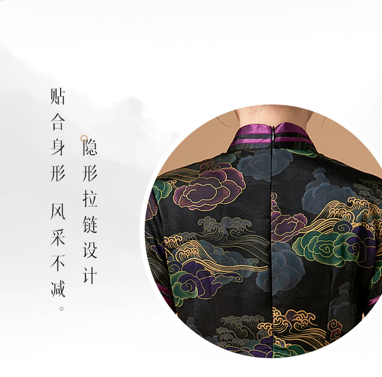 商品名称:复古日常改良旗袍祥云气质优雅立领中长连衣裙女 186655