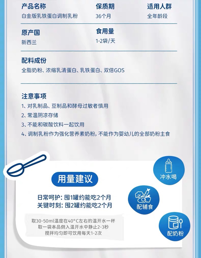 商品名称:【新西兰版本】NEURIO纽瑞优白金版乳铁蛋白调制乳粉60g