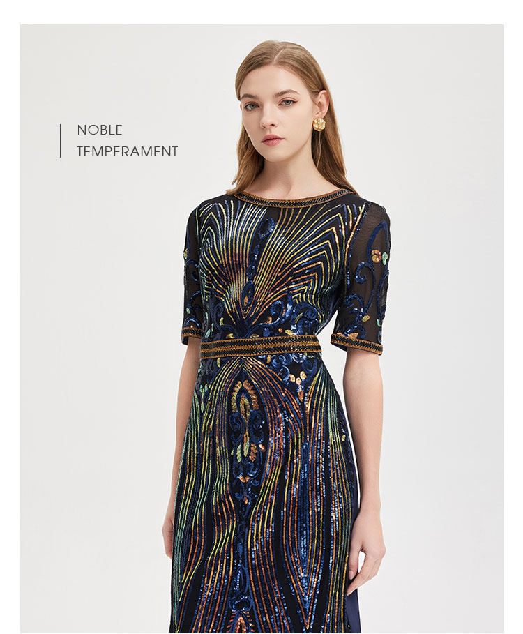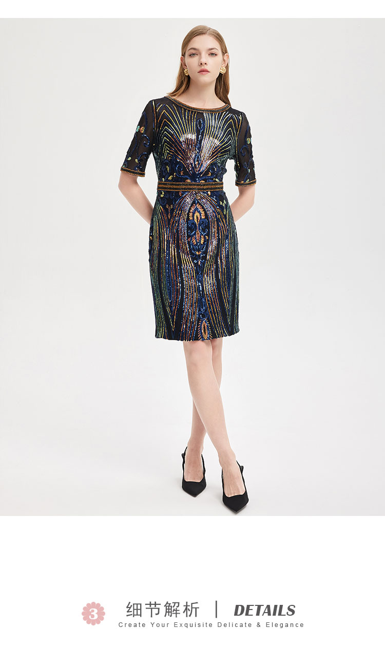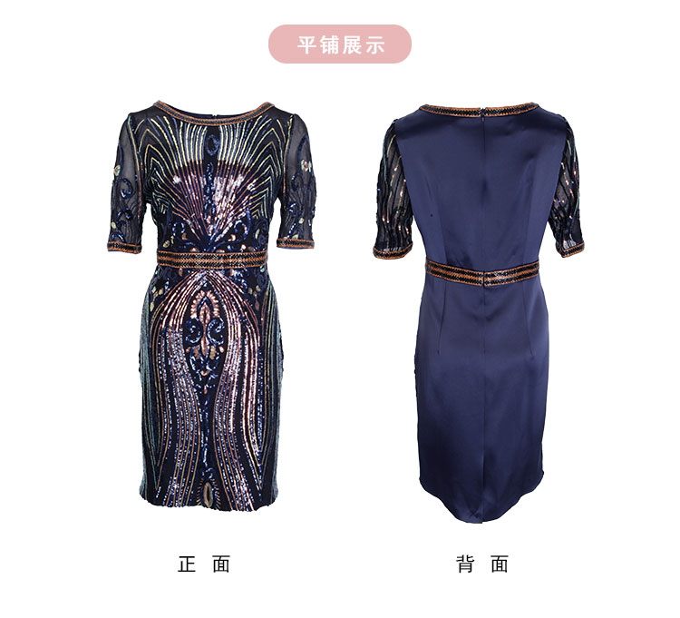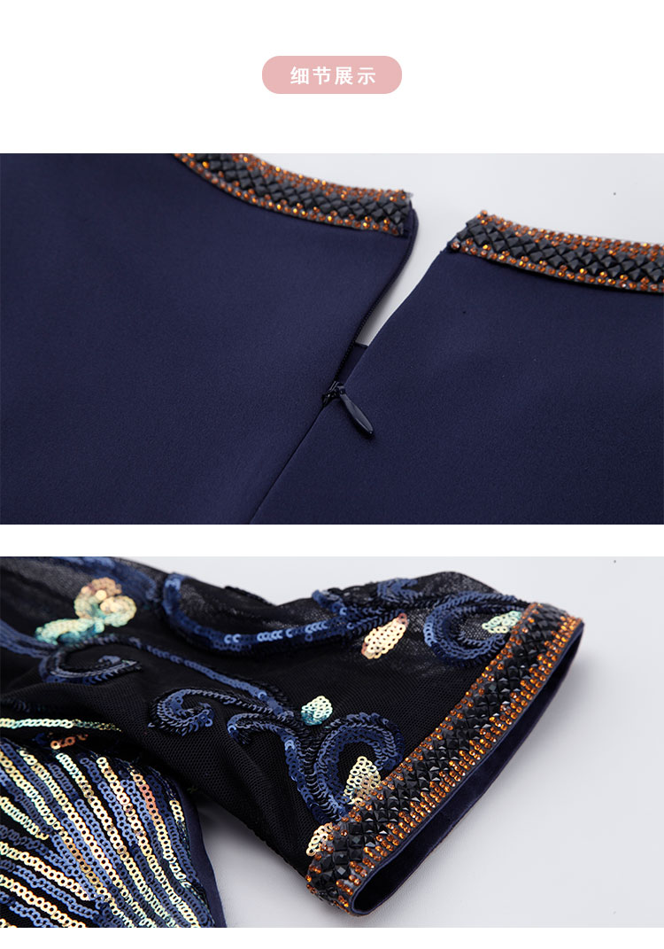 商品名称:夏季奢华亮片名媛气质合体珠片绣复古光感宴会礼服连衣裙 928991