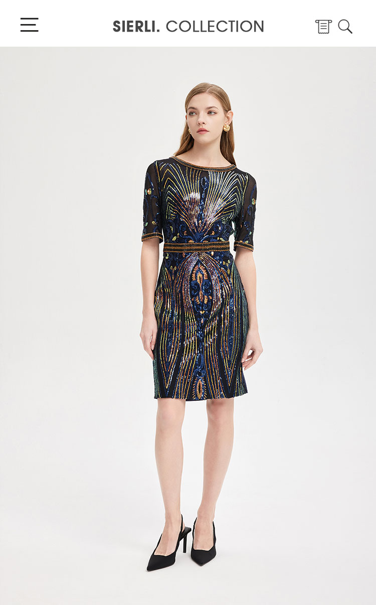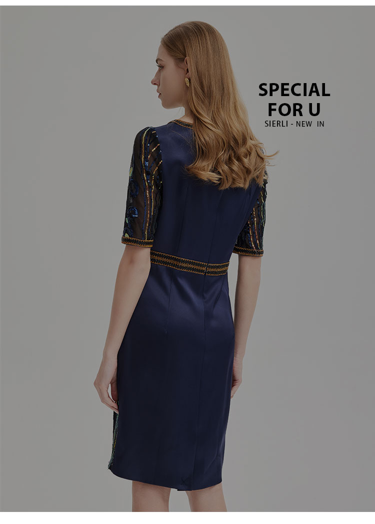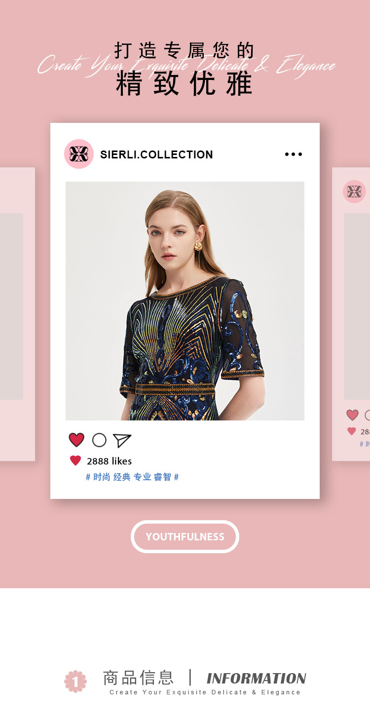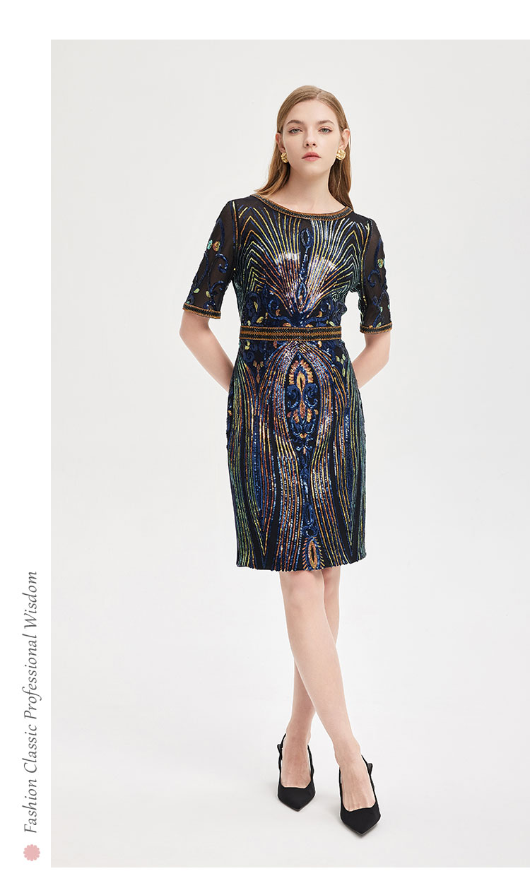 商品名称:夏季奢华亮片名媛气质合体珠片绣复古光感宴会礼服连衣裙 928991
