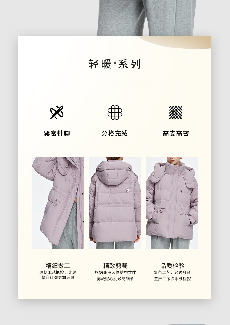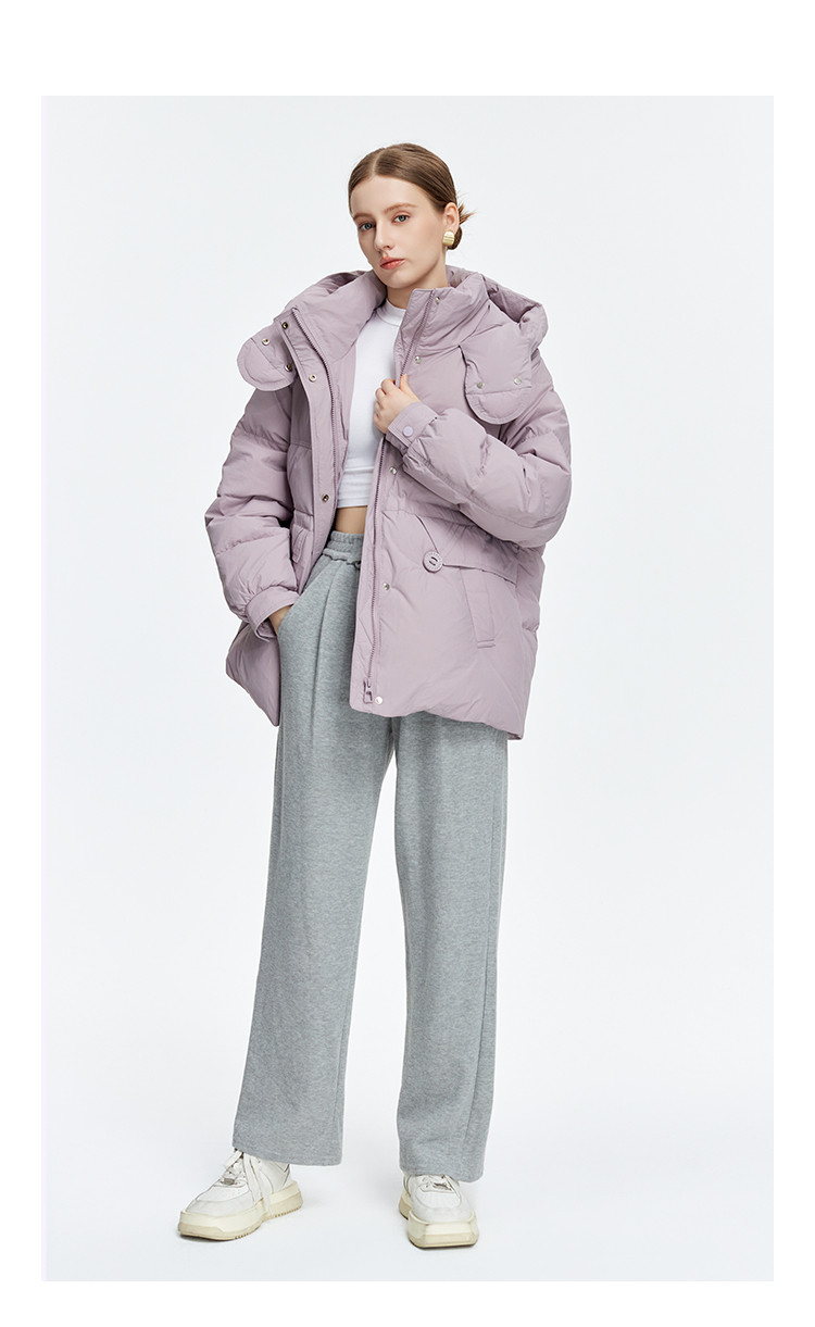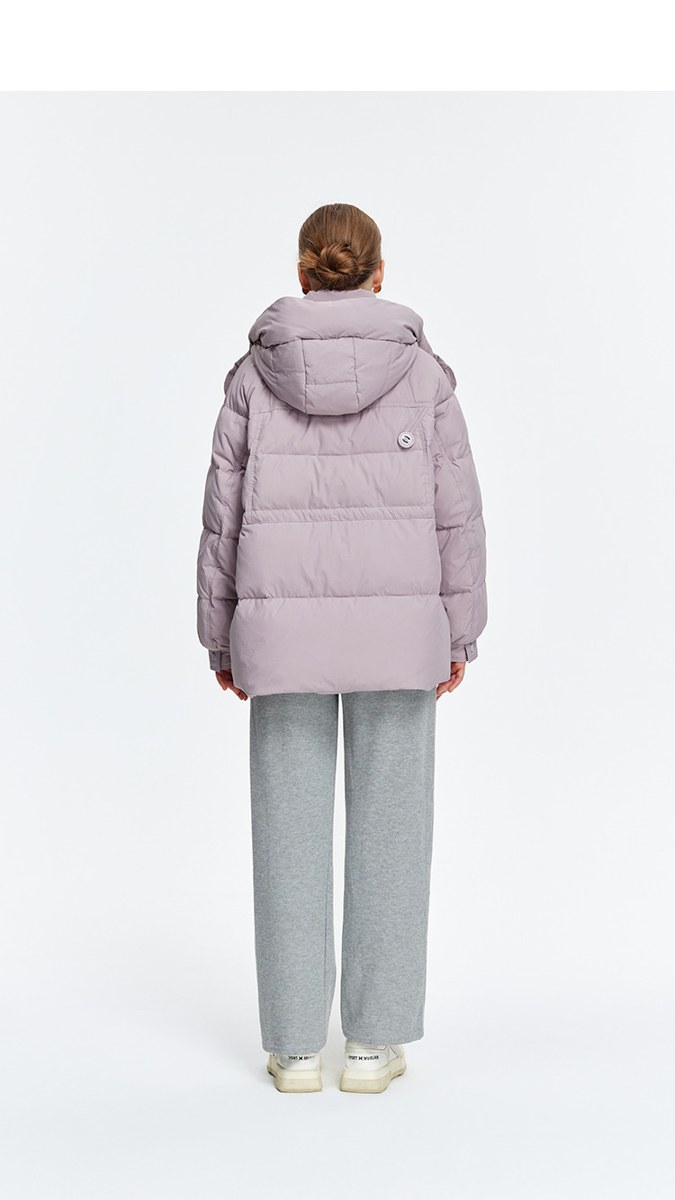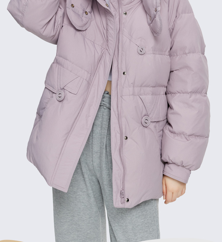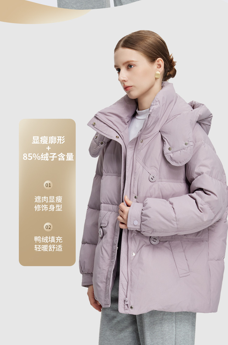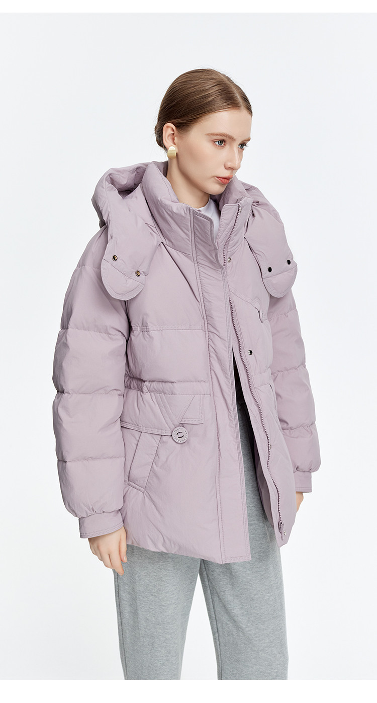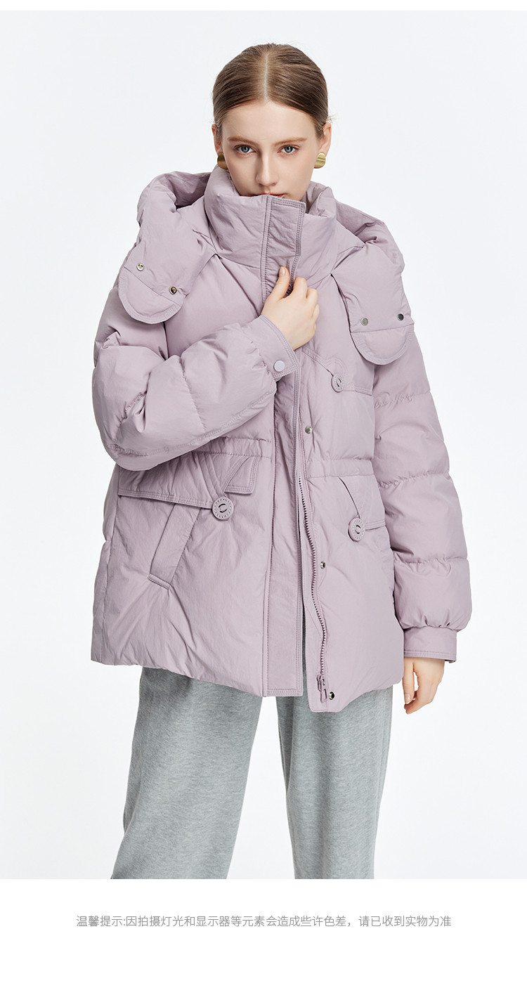 商品名称:韩版休闲纯色宽松抽绳束腰显瘦女式连帽短款加厚羽绒服 359583