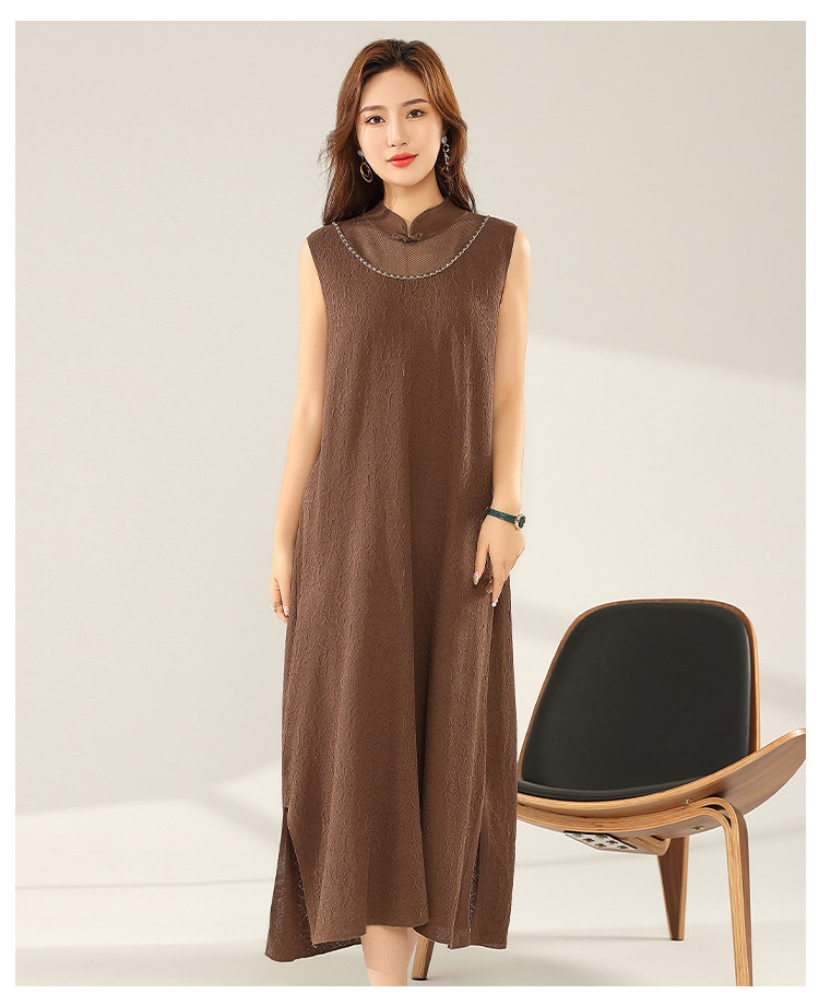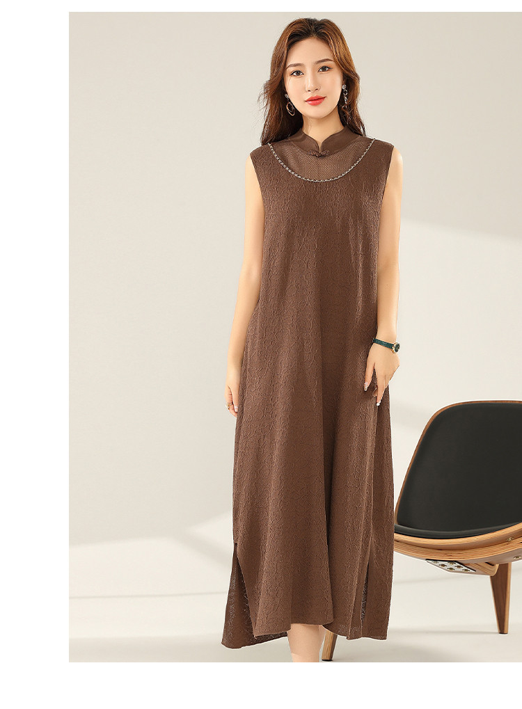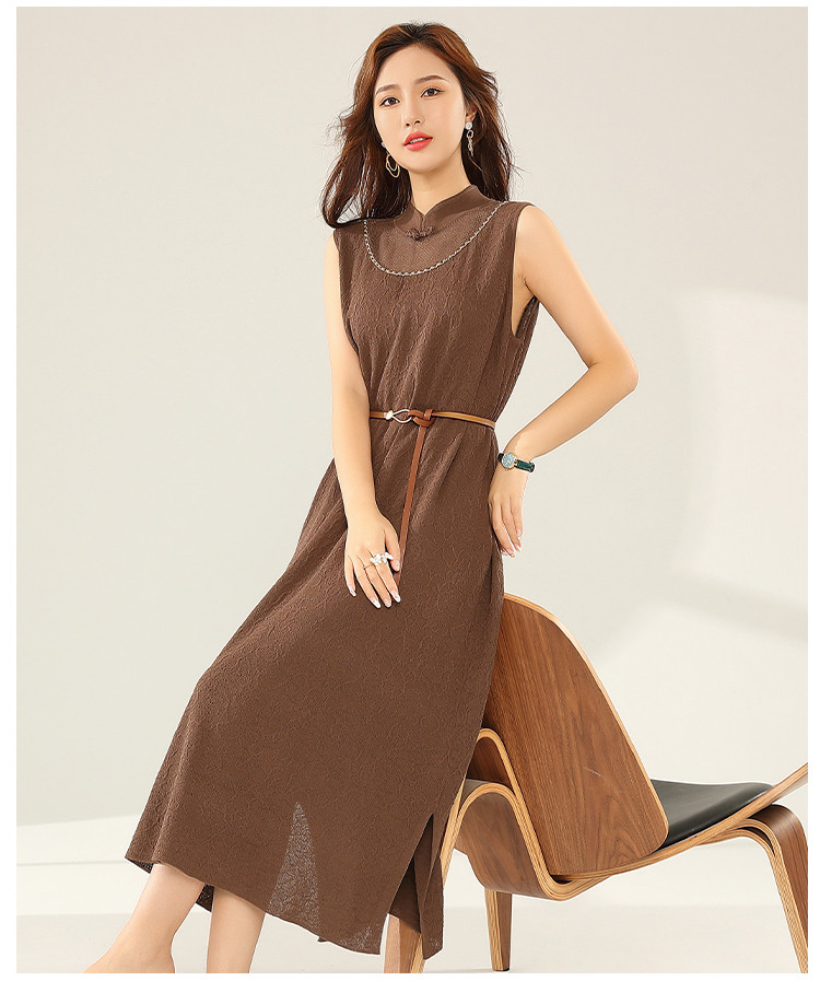 商品名称:【中式盘扣】古风无袖夏季连衣裙女式气质高级感针织连衣裙长 222879
