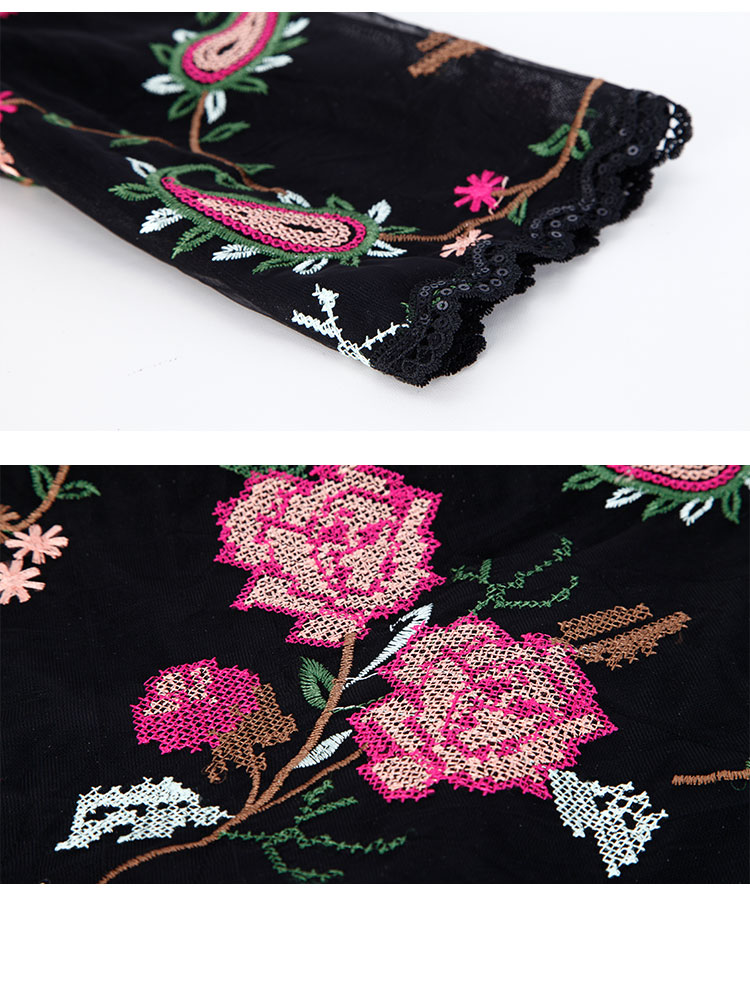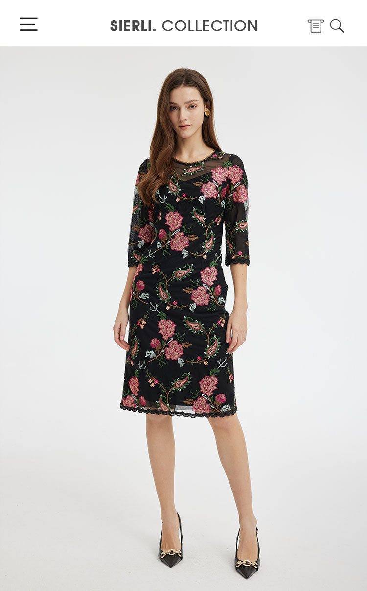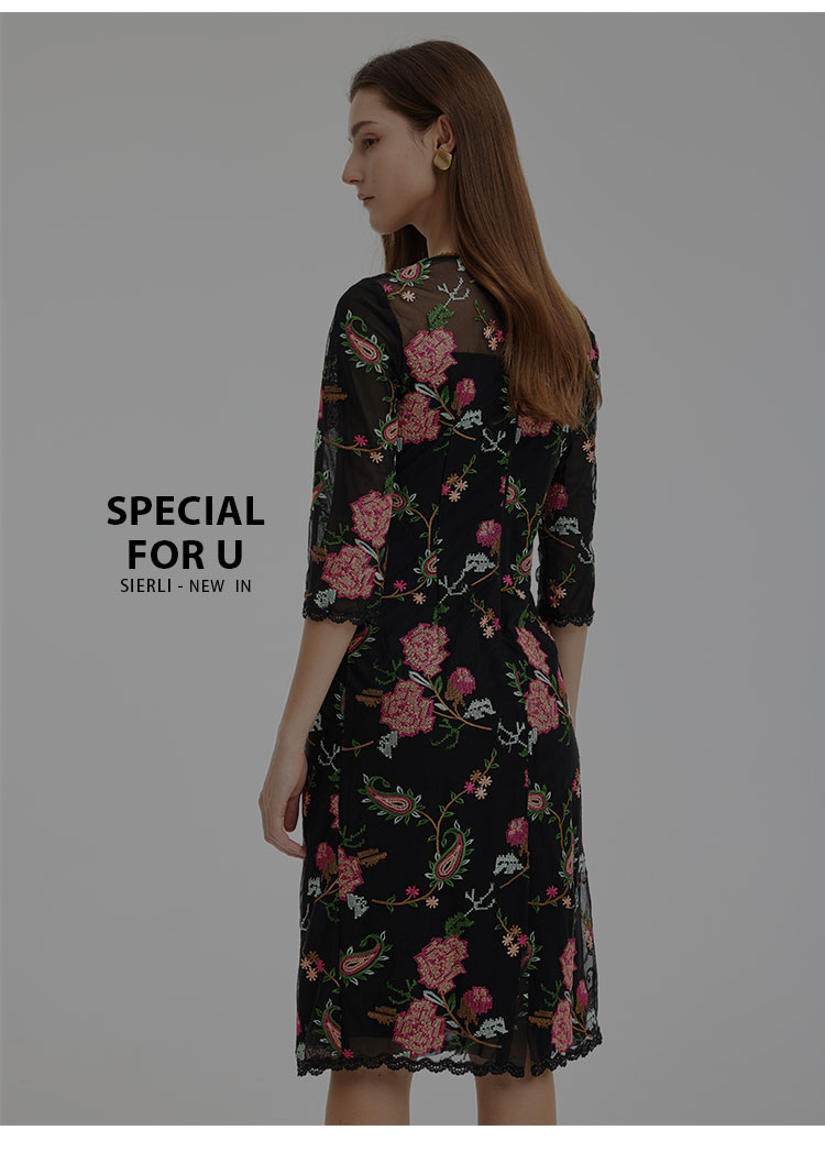 春夏圆领浪漫十字绣花小A摆优雅气质温柔淑女连衣裙 965855