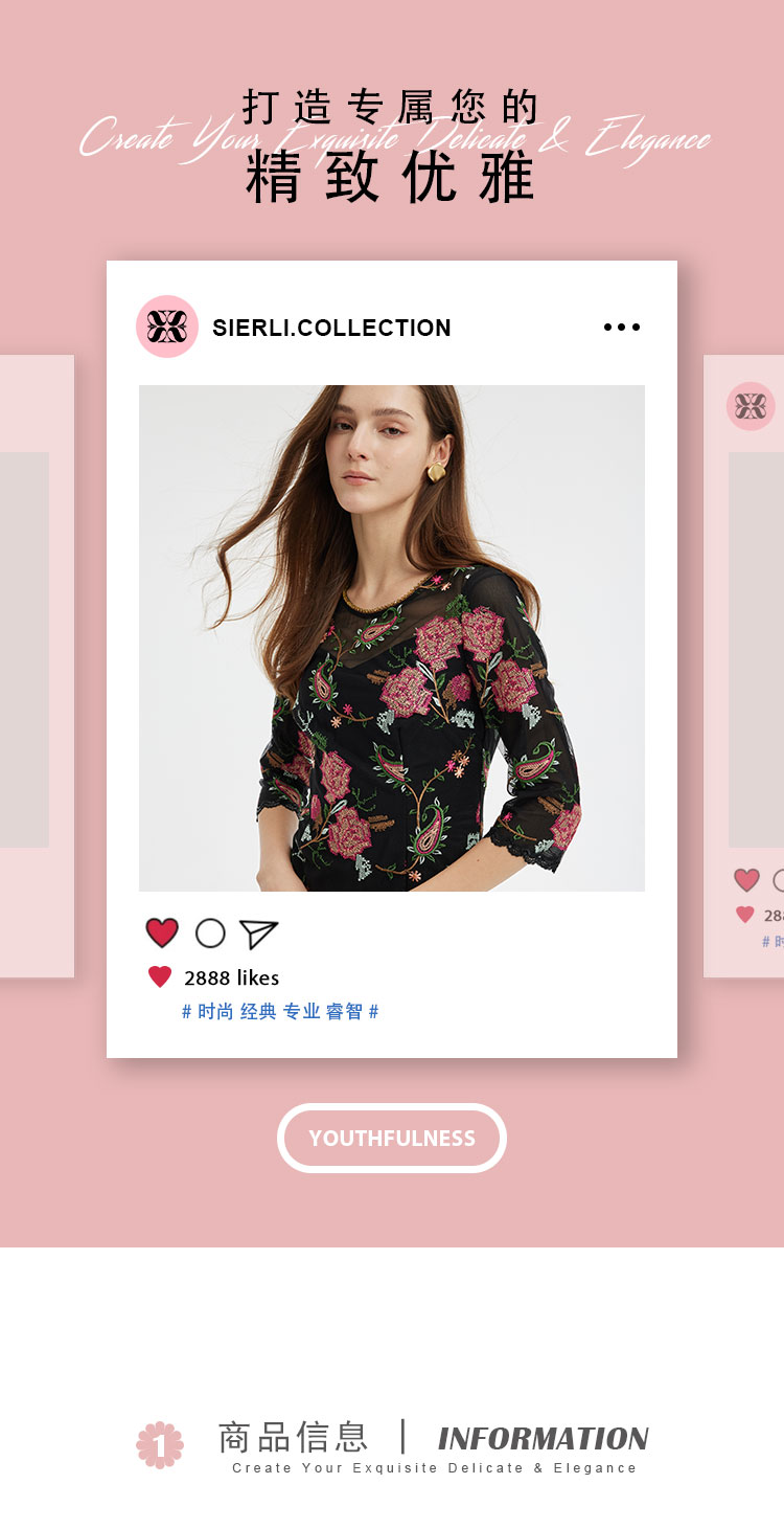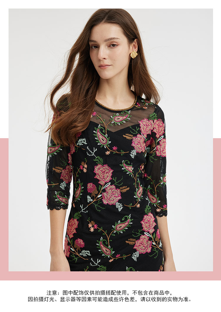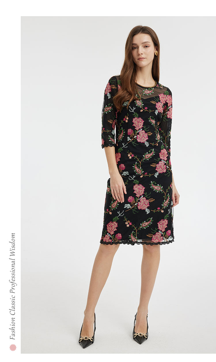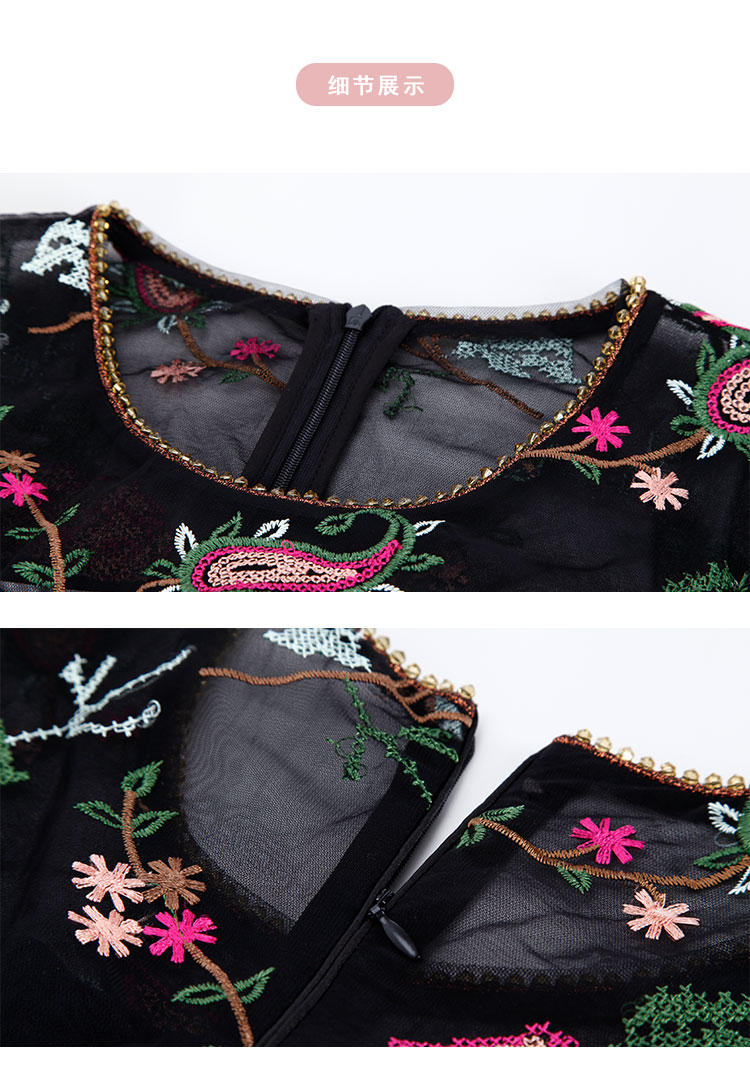 商品名称:春夏圆领浪漫十字绣花小A摆优雅气质温柔淑女连衣裙 965855
