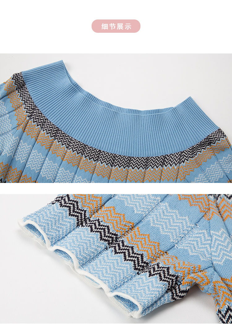 玖姿旗下安娜蔻系列撞色提花翻领针织衫女春夏 741388