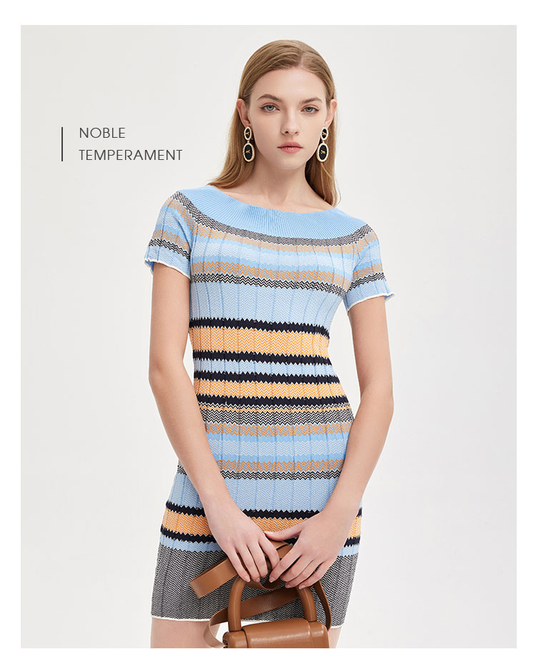 商品名称:夏季丝质条纹常规款修身短袖上衣通勤百搭女式针织衫 542559
