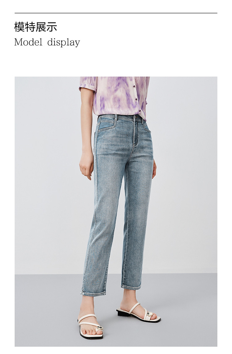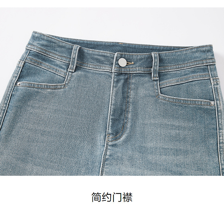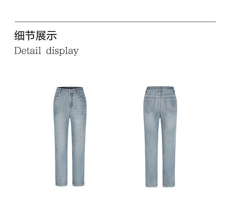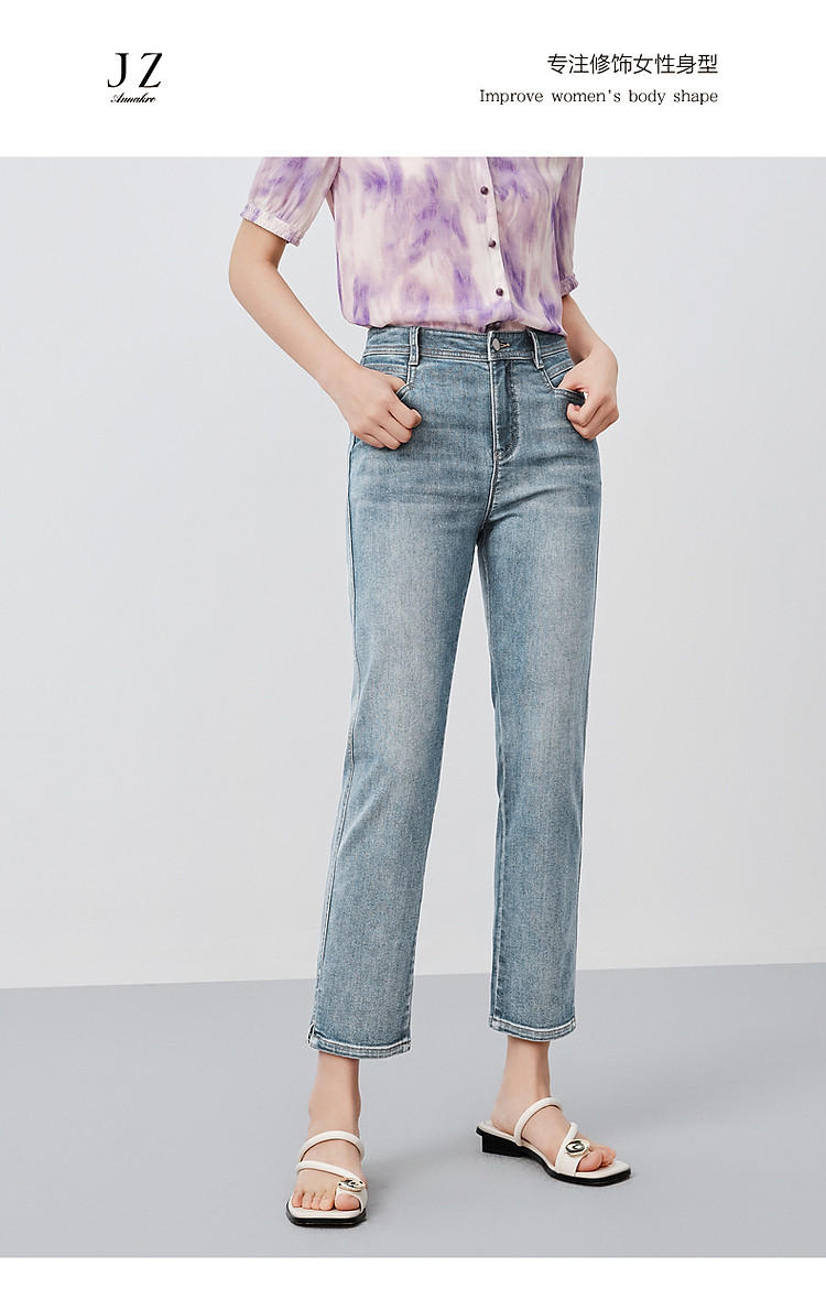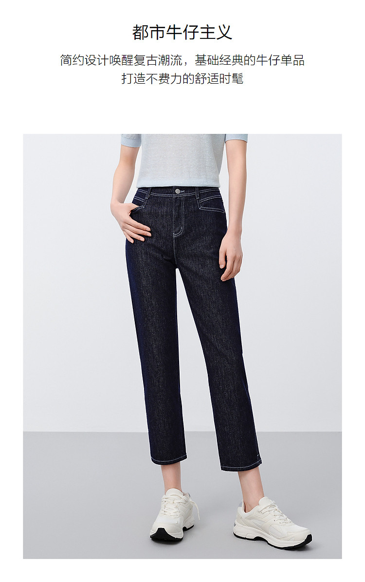 商品名称:玖姿旗下安娜蔻系列丹宁复古显瘦明线装饰牛仔裤女夏季 533324