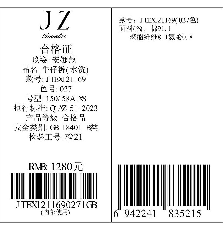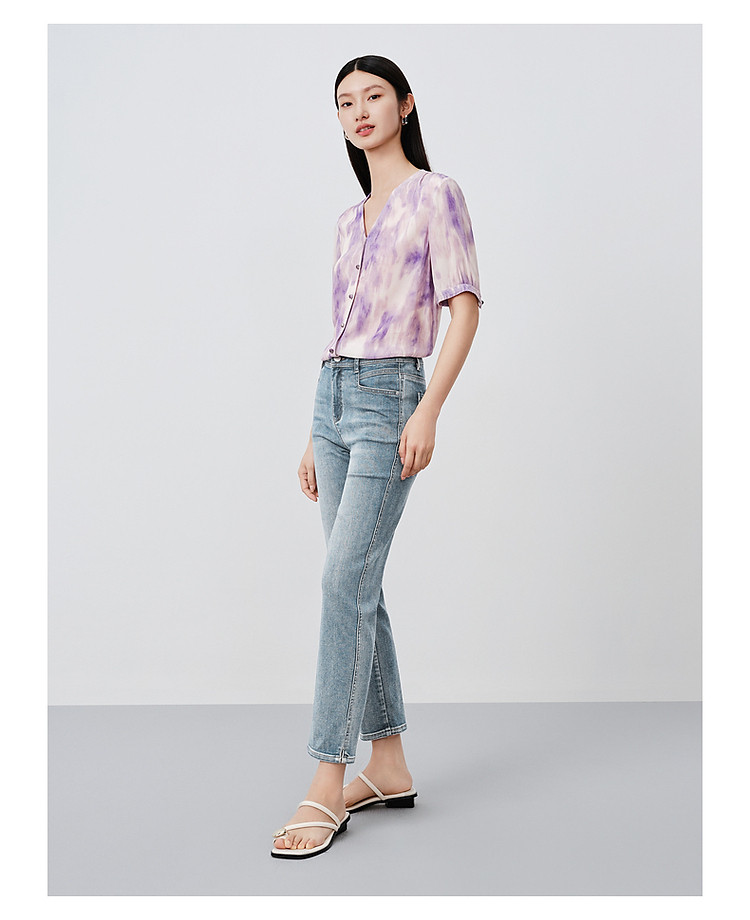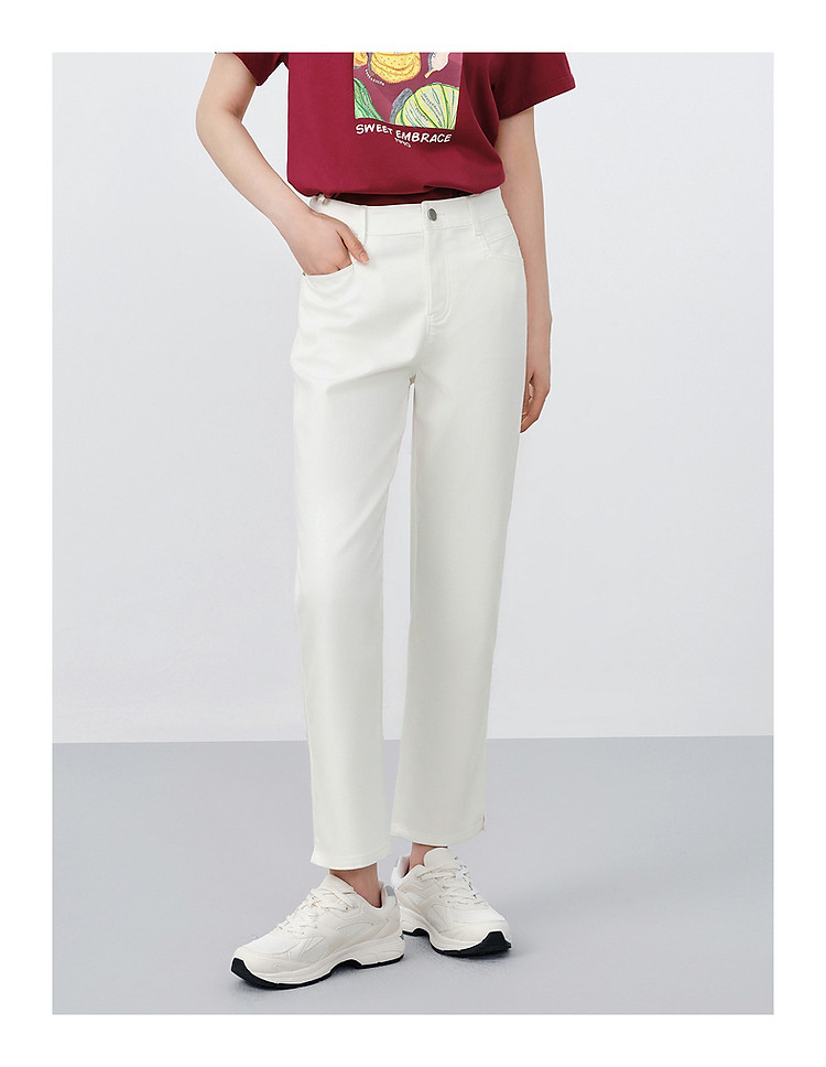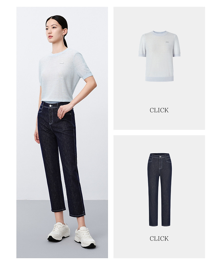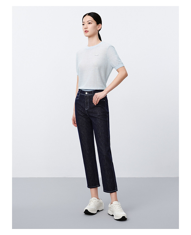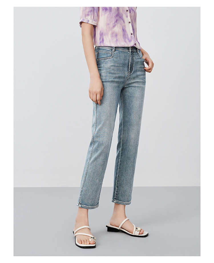商品名称:玖姿旗下安娜蔻系列丹宁复古显瘦明线装饰牛仔裤女夏季 533324