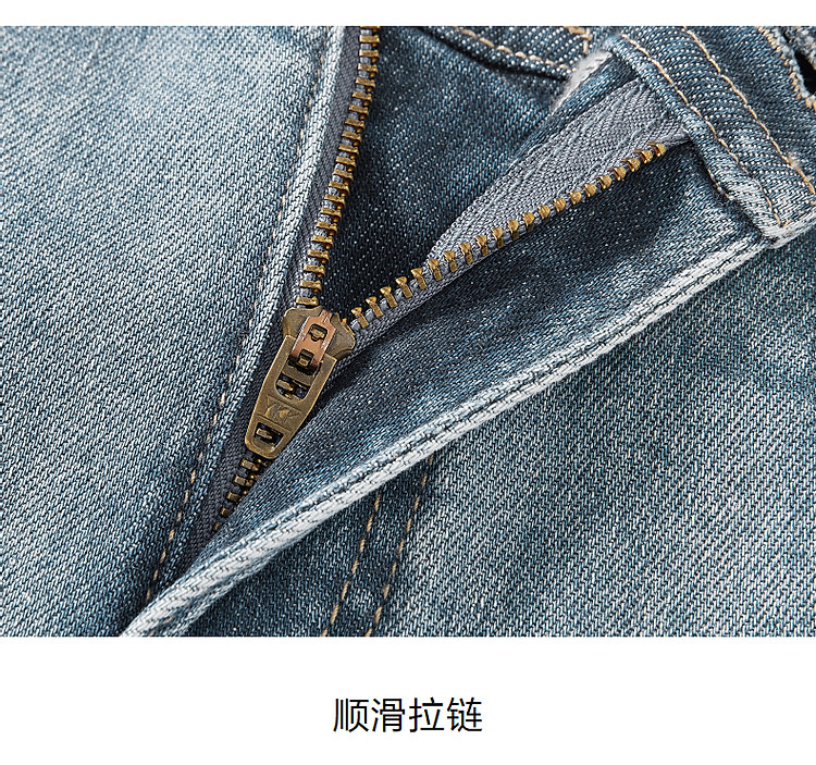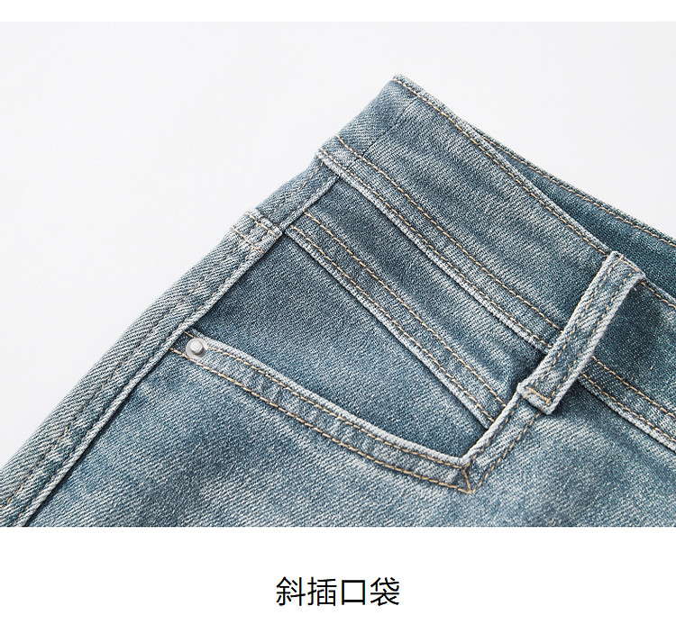 玖姿旗下安娜蔻系列丹宁复古显瘦明线装饰牛仔裤女夏季 533324