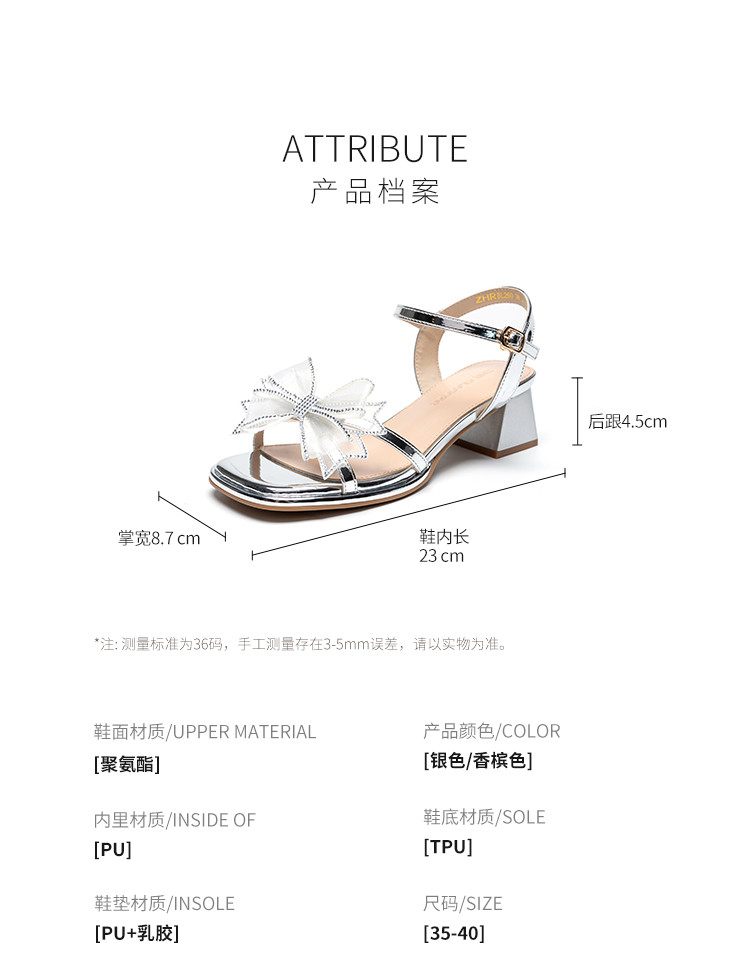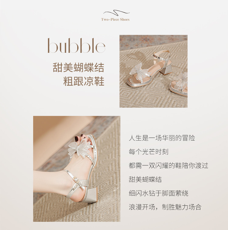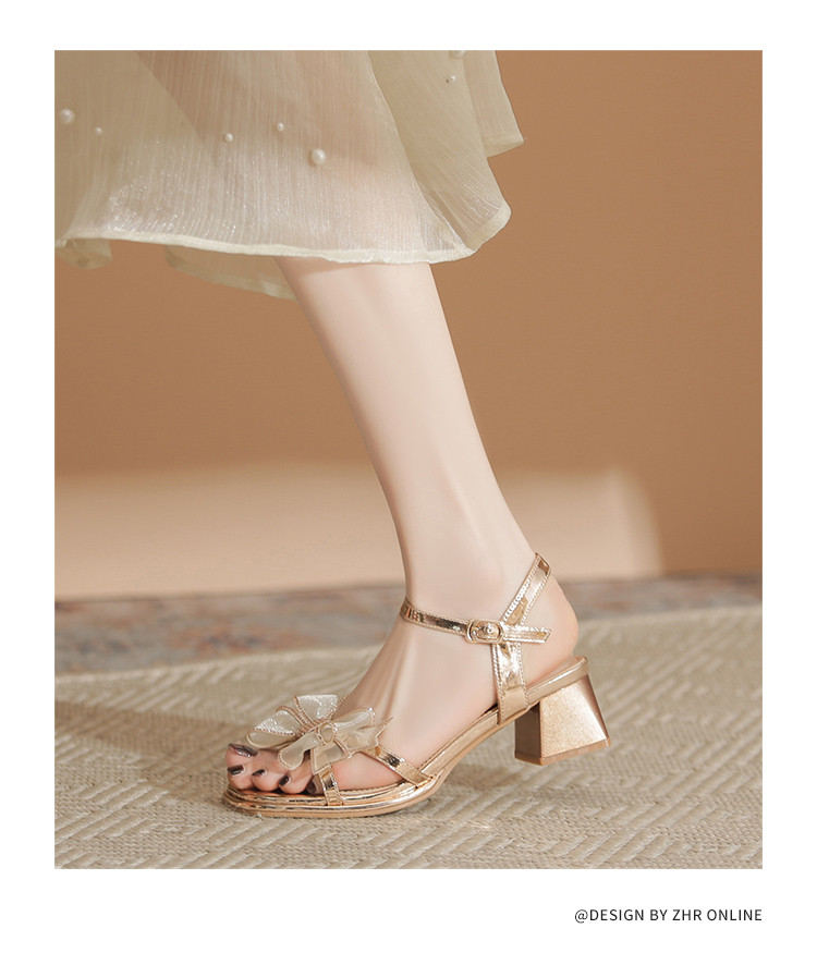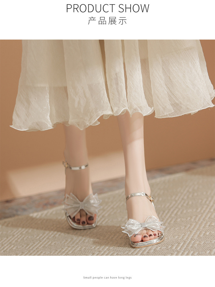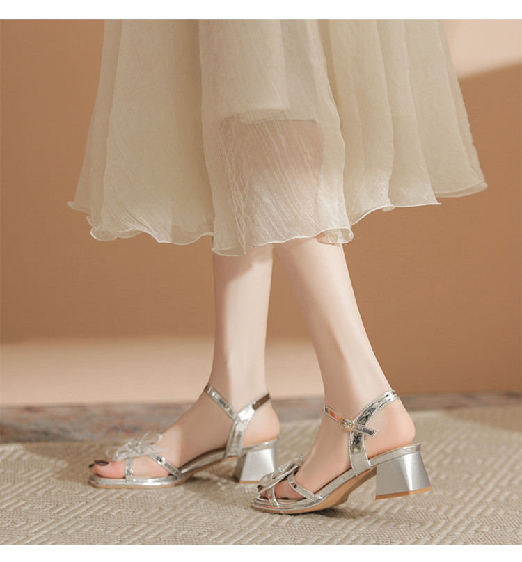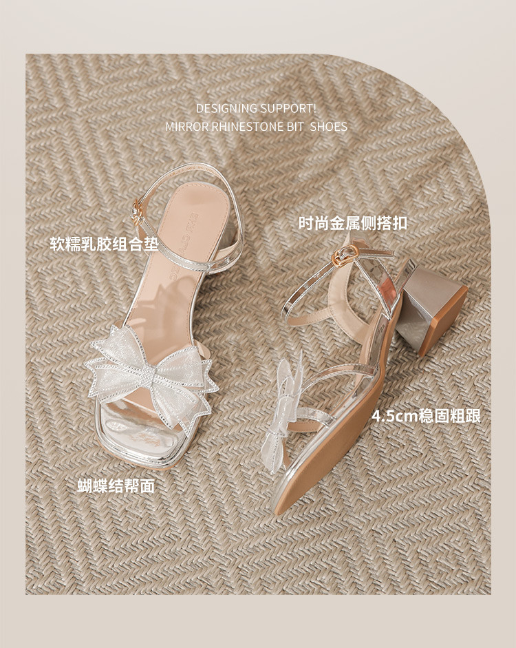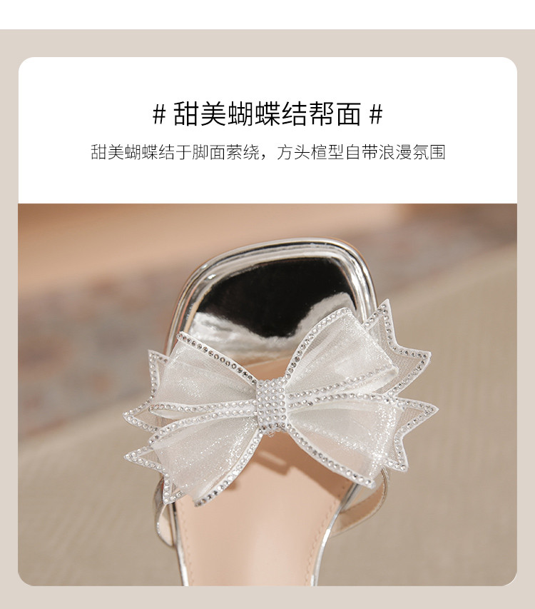 商品名称:【闪耀水钻蝴蝶结】粗跟凉鞋女款高级感一字带女凉鞋女夏季小个子 163136
