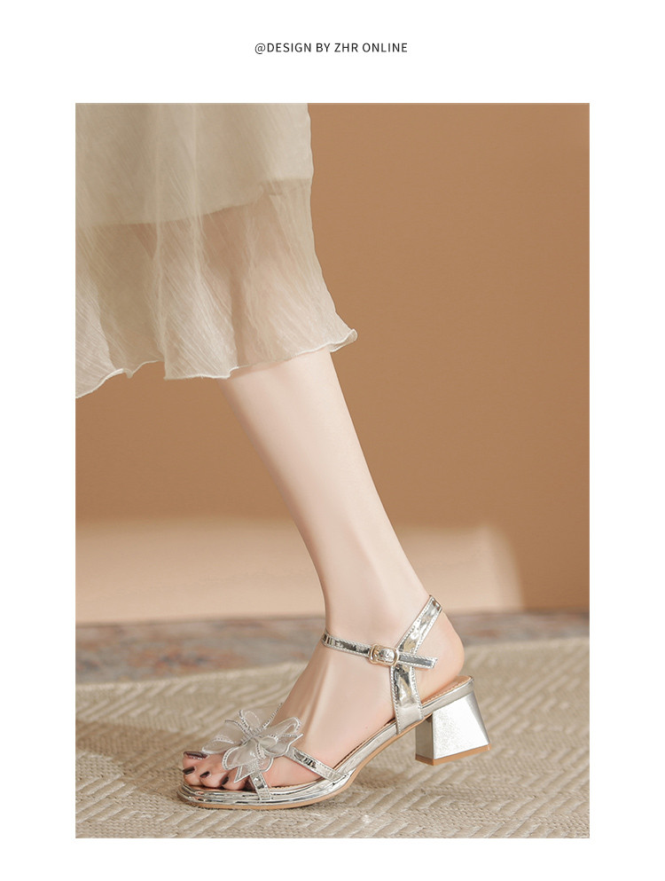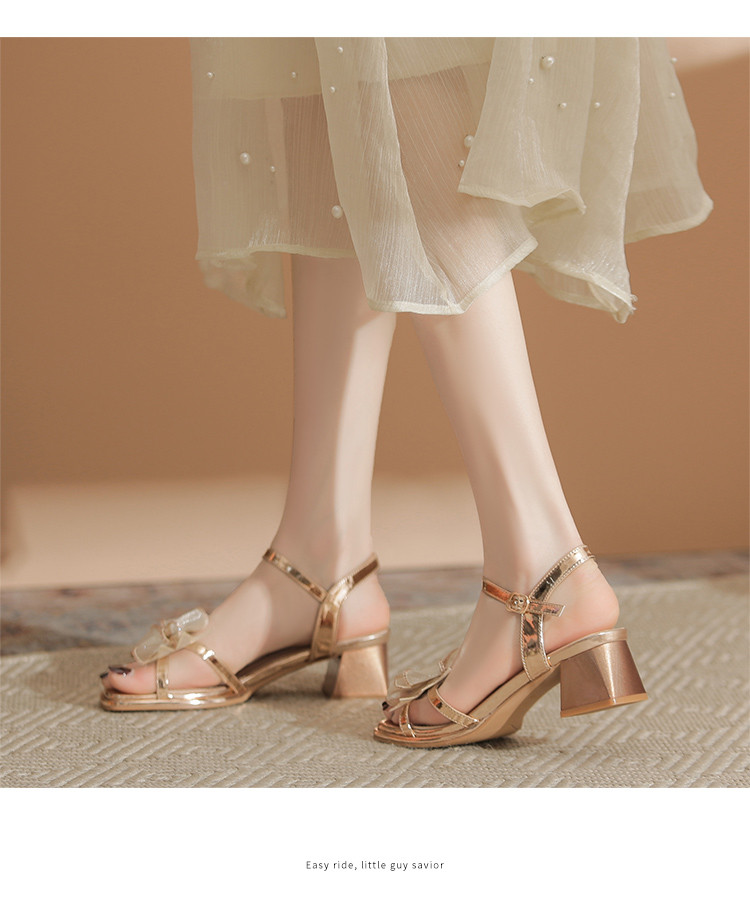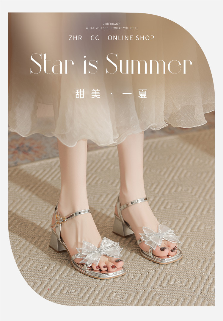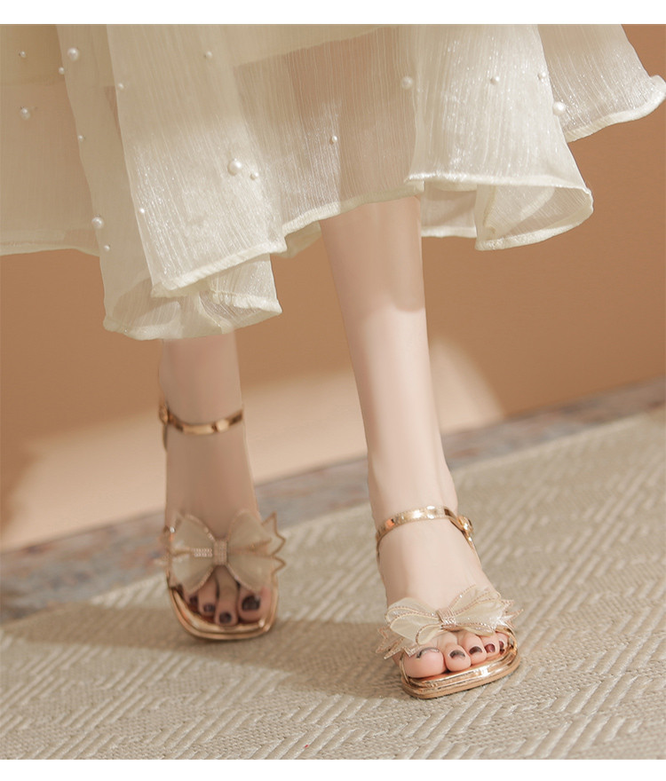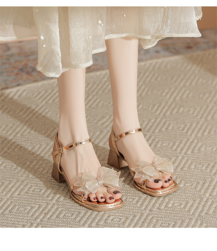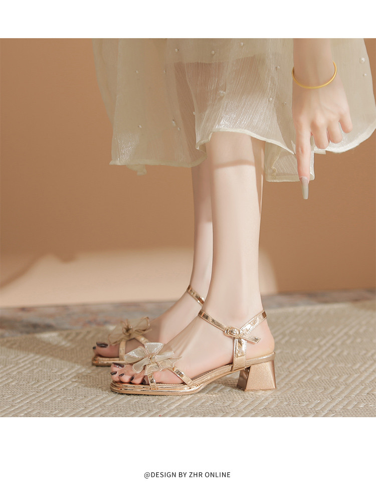 商品名称:【闪耀水钻蝴蝶结】粗跟凉鞋女款高级感一字带女凉鞋女夏季小个子 163136