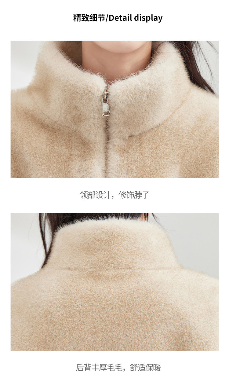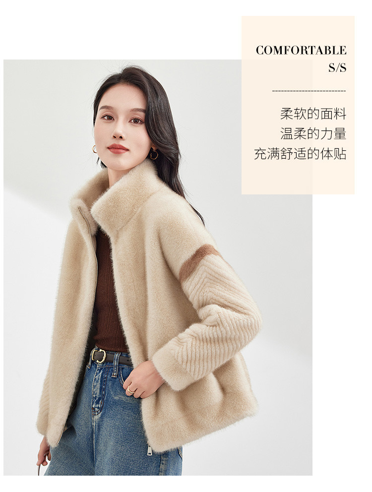商品名称:冬季小个子立领保暖仿貂绒环保皮草女式日常通勤休闲仿皮草外套 882719