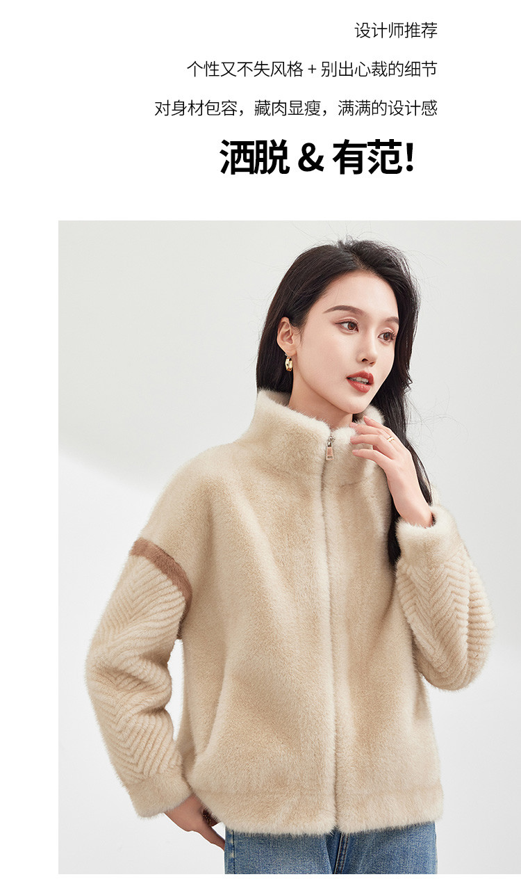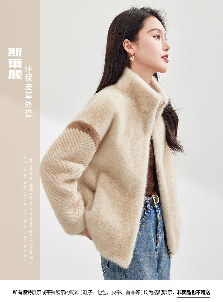 冬季小个子立领保暖仿貂绒环保皮草女式日常通勤休闲仿皮草外套 882719