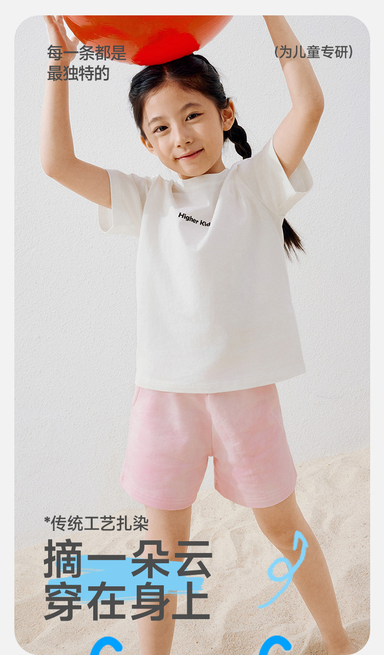 【100%棉】夏季女童家居裤扎染薄款舒适全棉A类三分打底短裤 184986