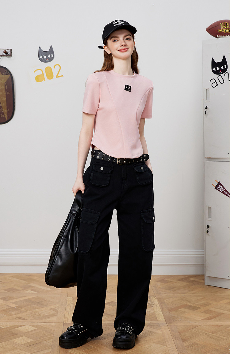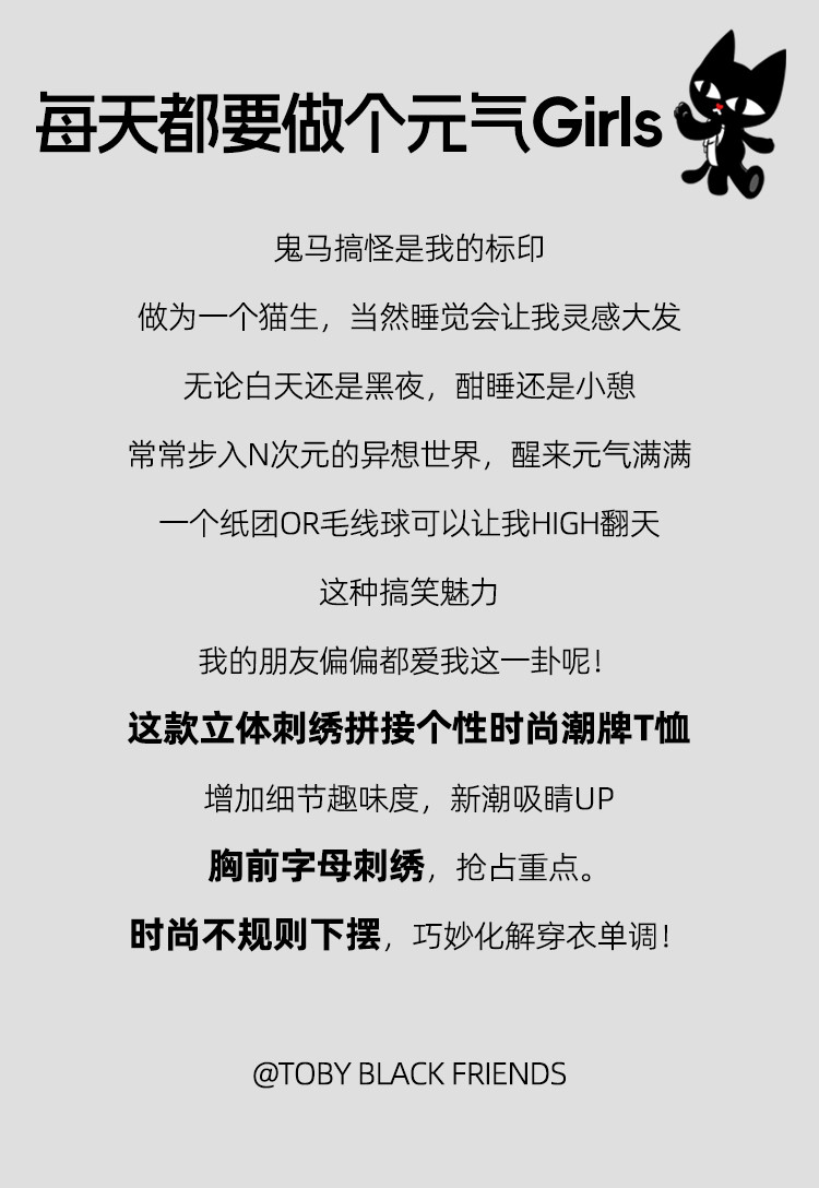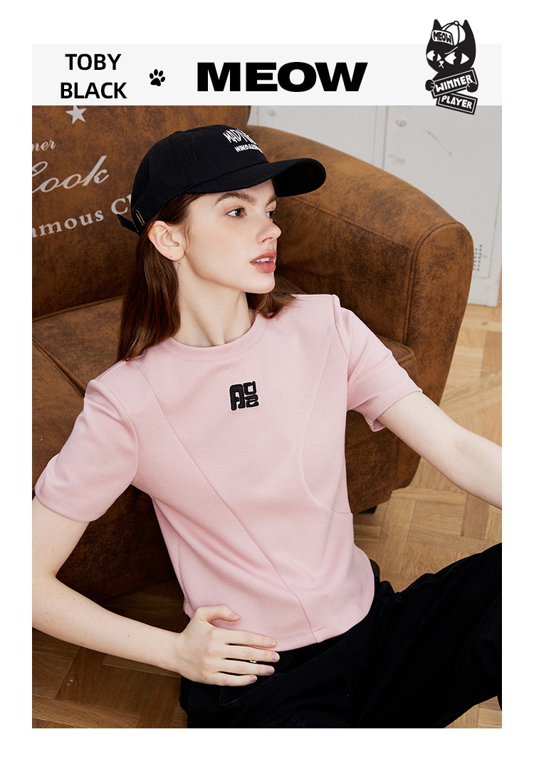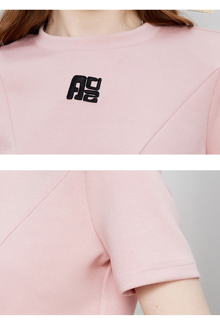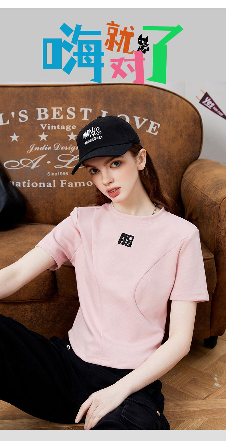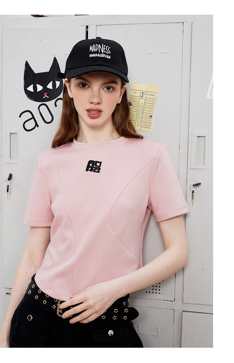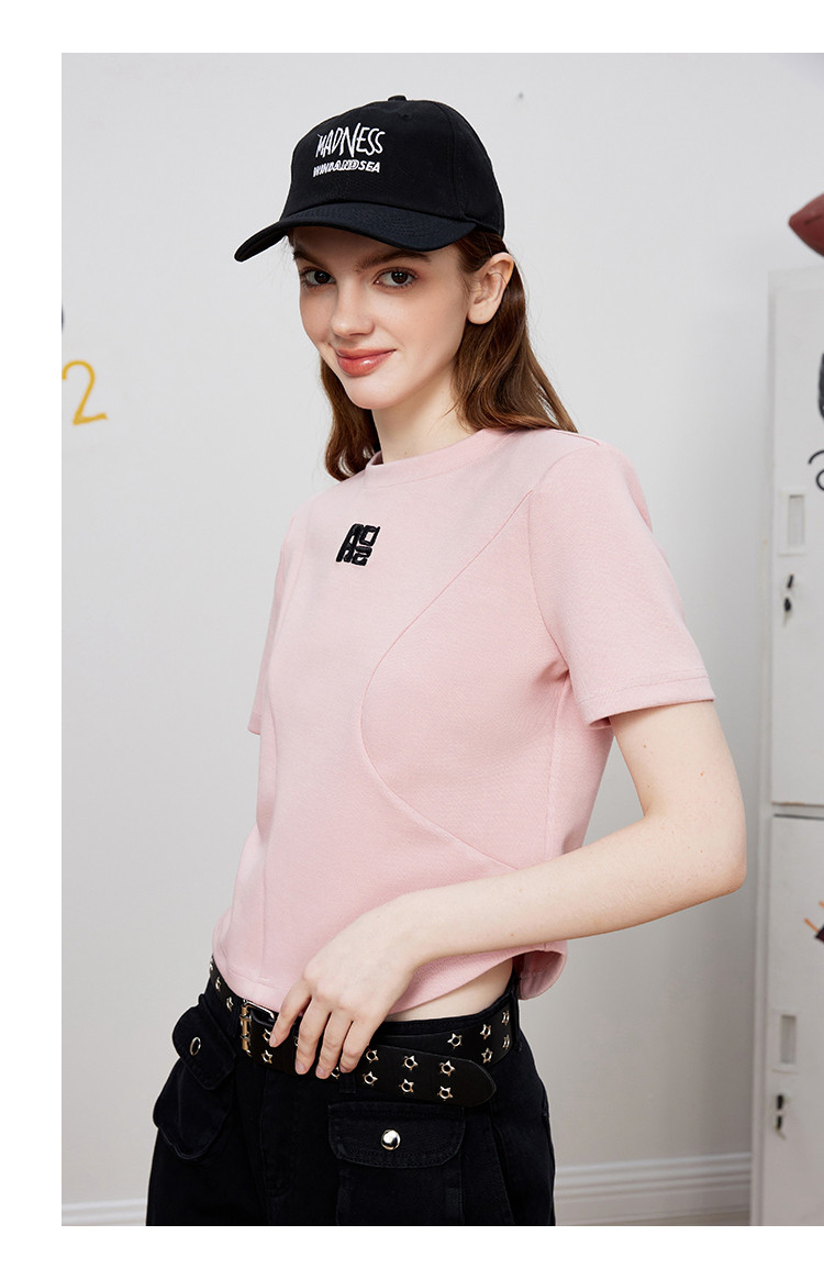 商品名称:立体刺绣拼接个性时尚潮牌女式T恤夏季正肩圆领短袖上衣 829277