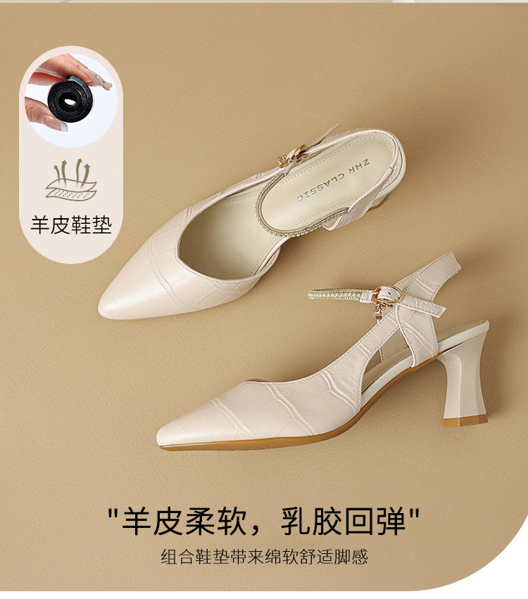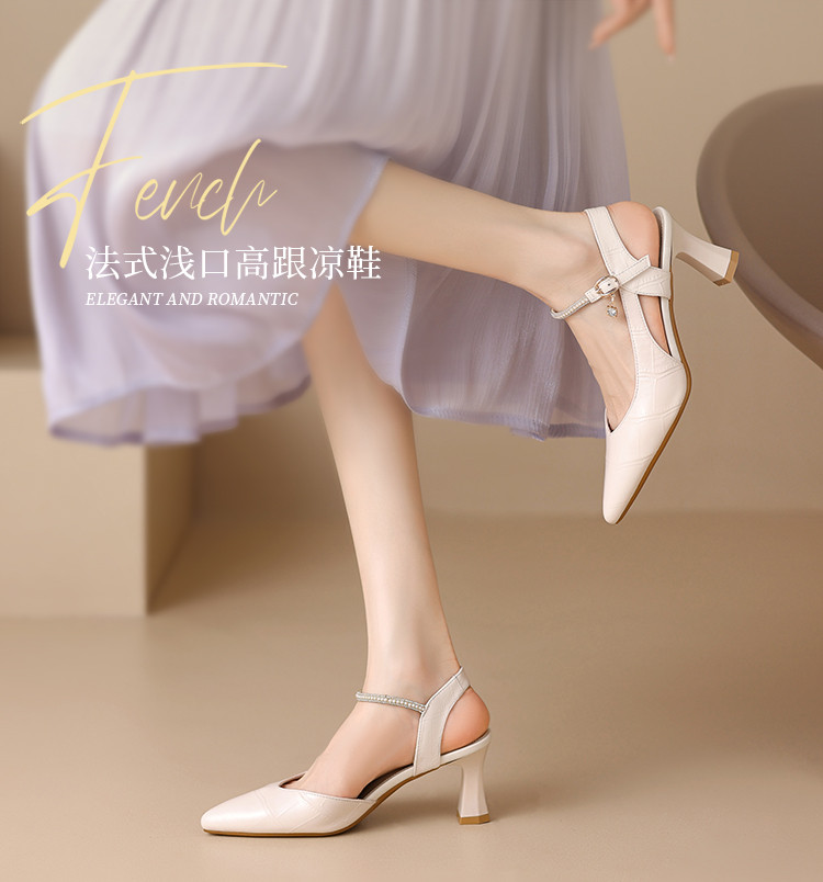 【头层牛皮】真皮女鞋包头凉鞋女款高级感高跟凉鞋子女士单鞋女夏 872000