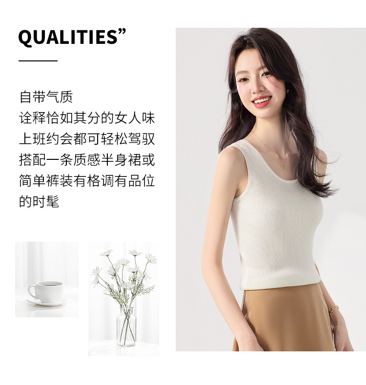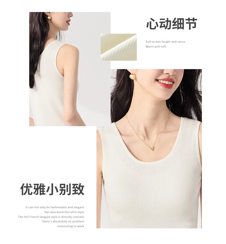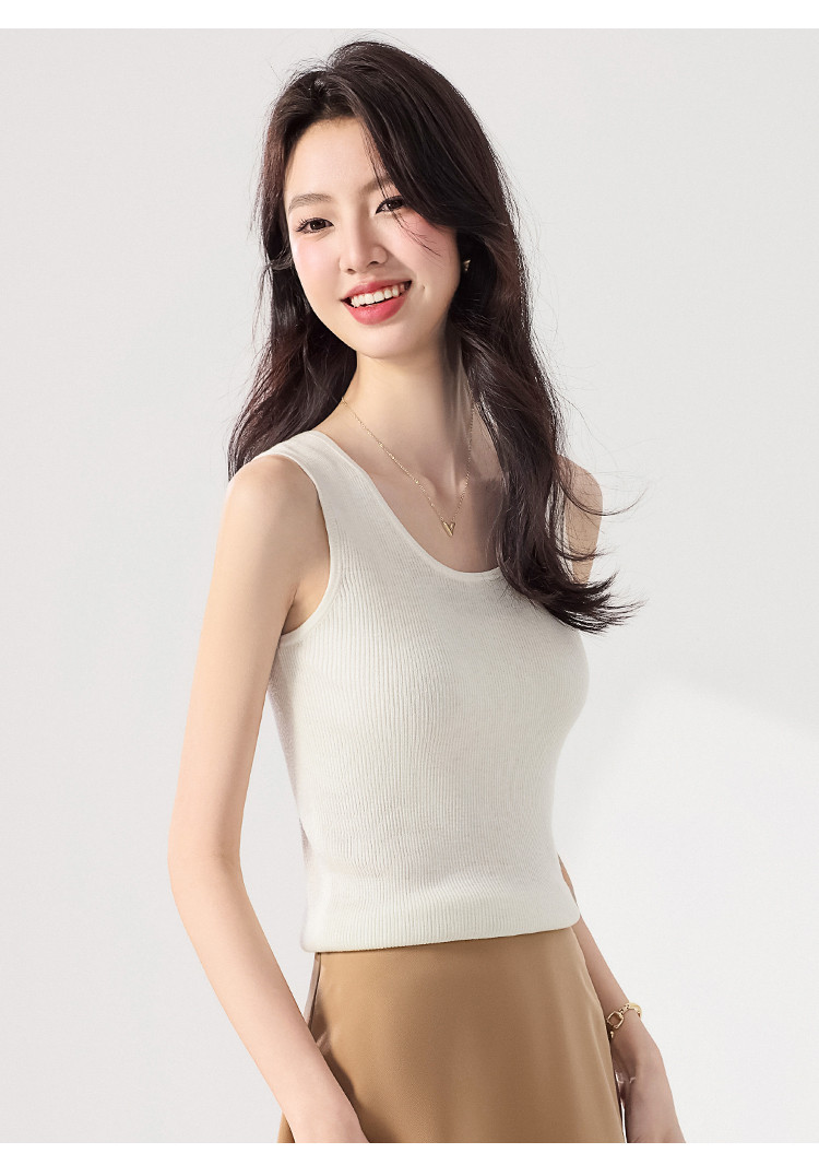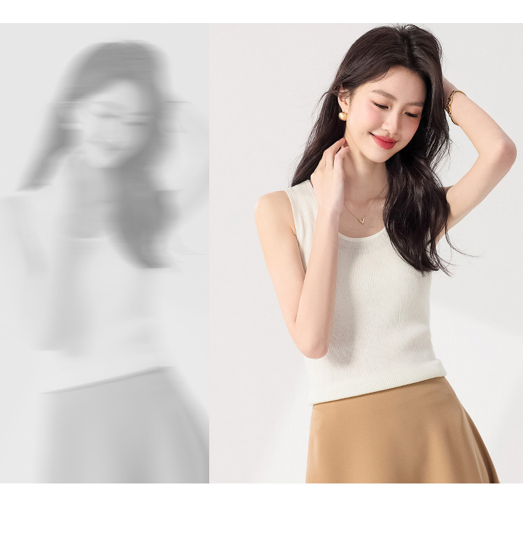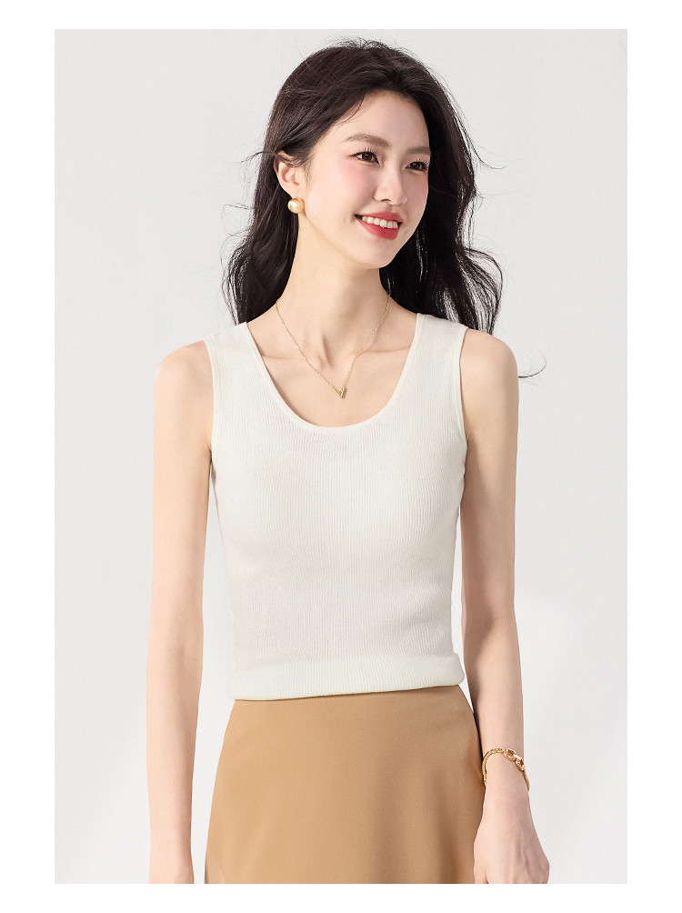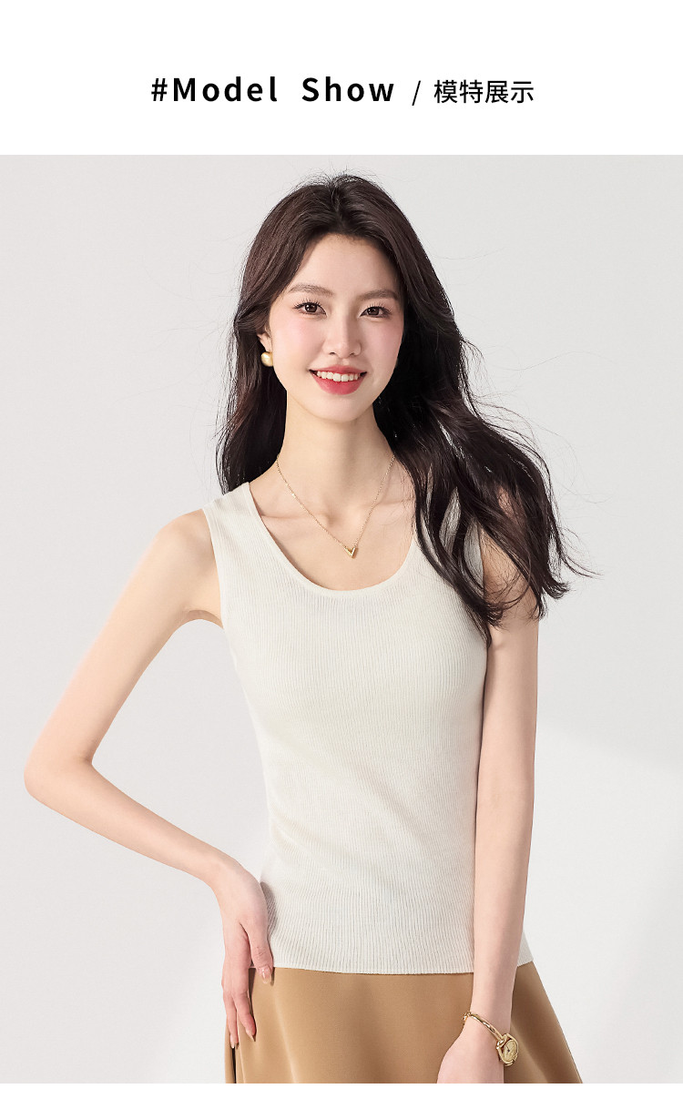 商品名称:春夏轻薄透气百搭纯色圆领无袖含桑蚕丝针织打底衫背心马甲坎肩 198483
