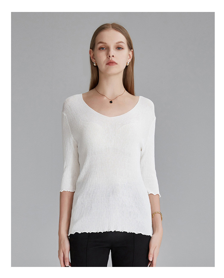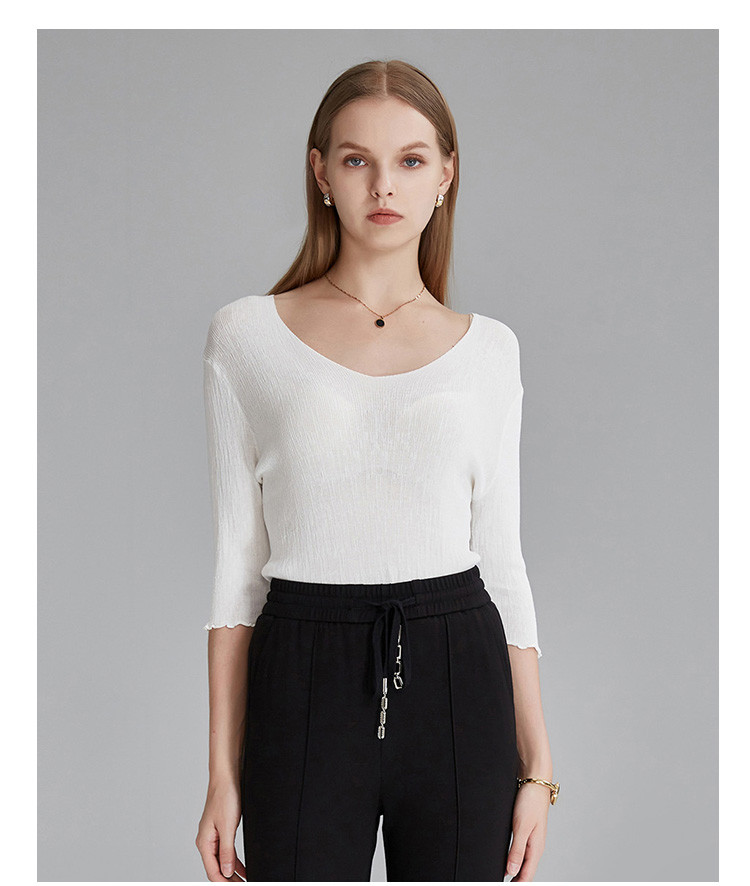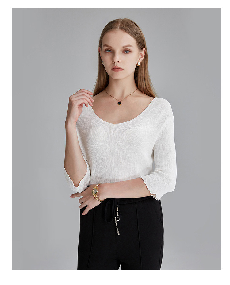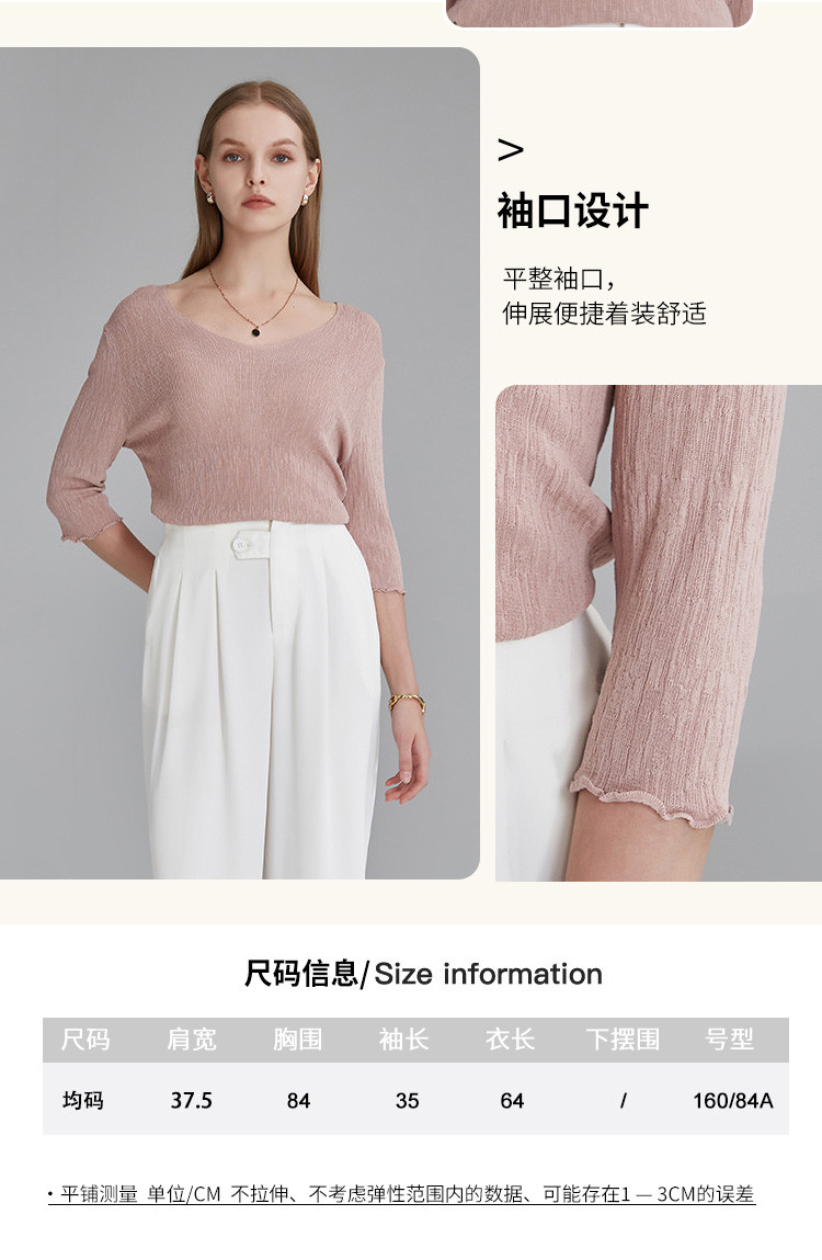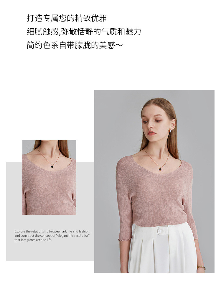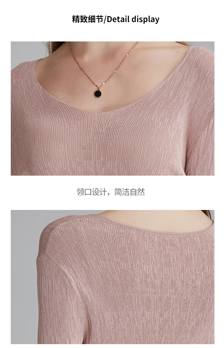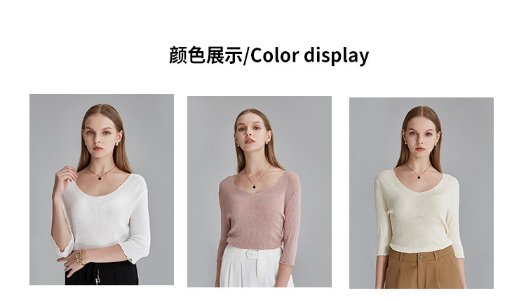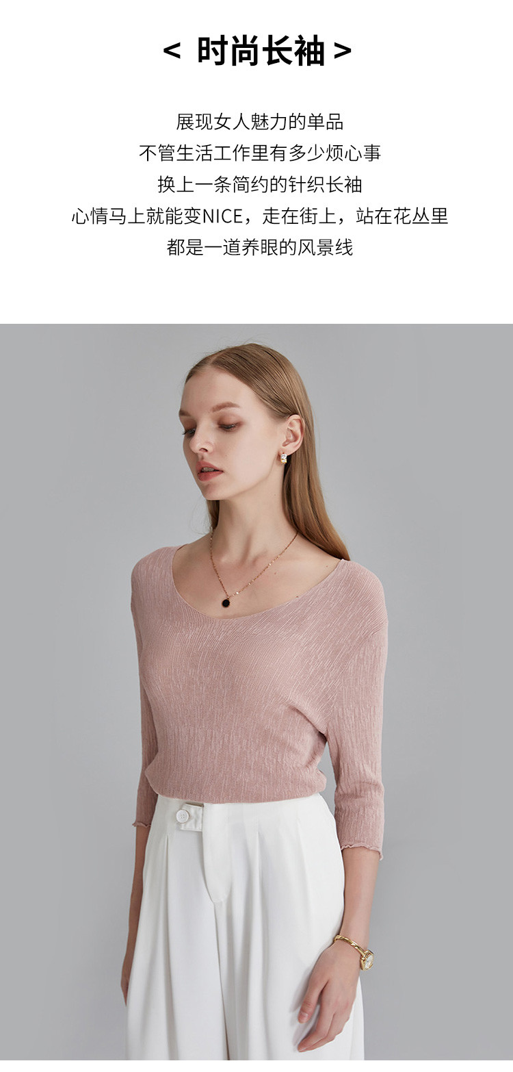 商品名称:春秋新款时尚木耳边内搭女式薄款简约纯色针织衫百搭七分袖上衣 365791