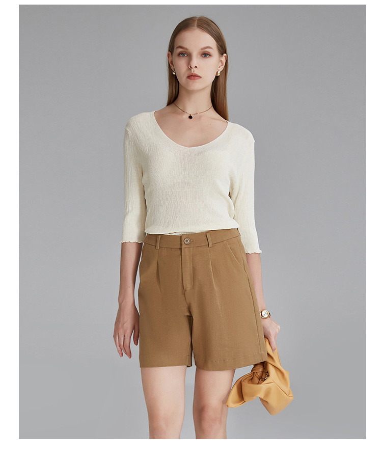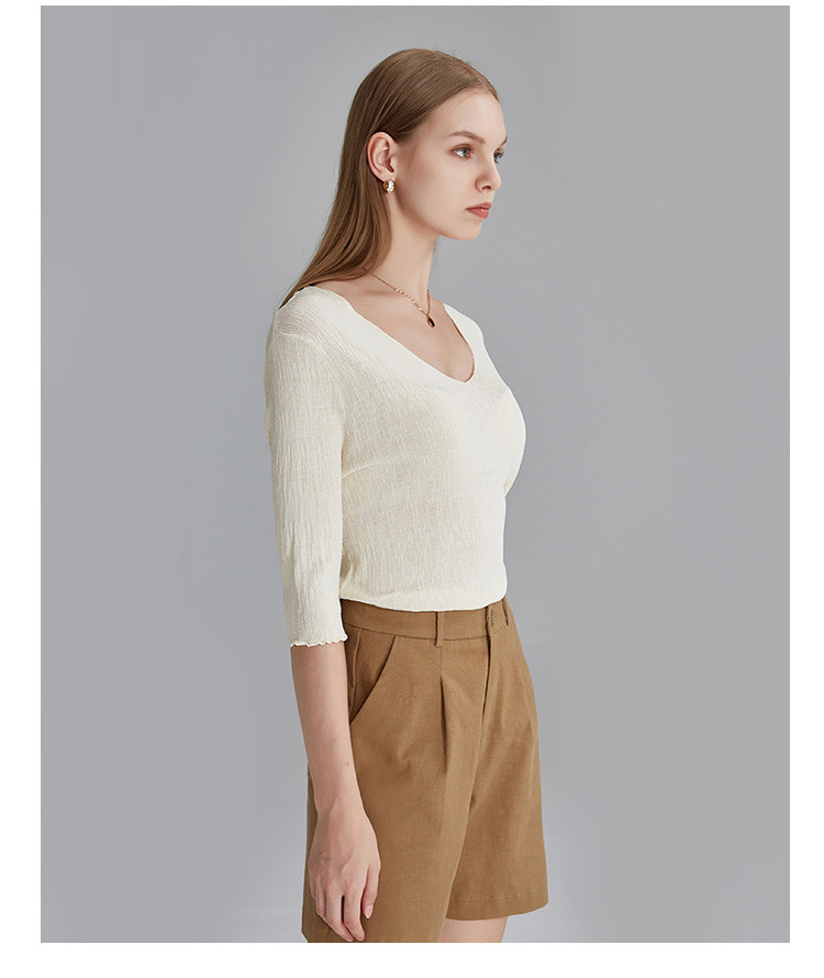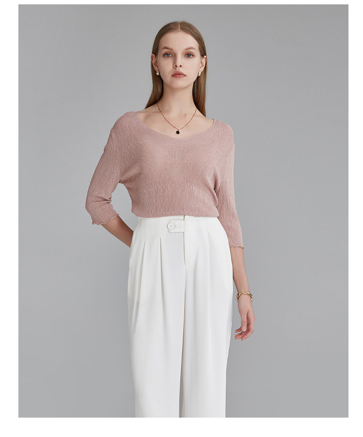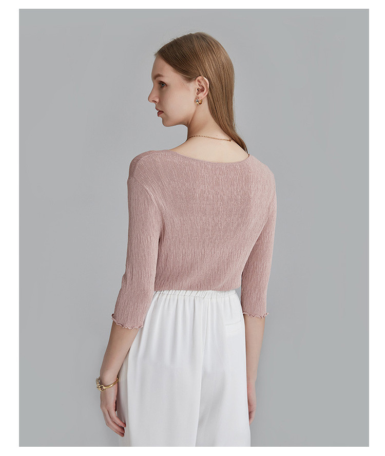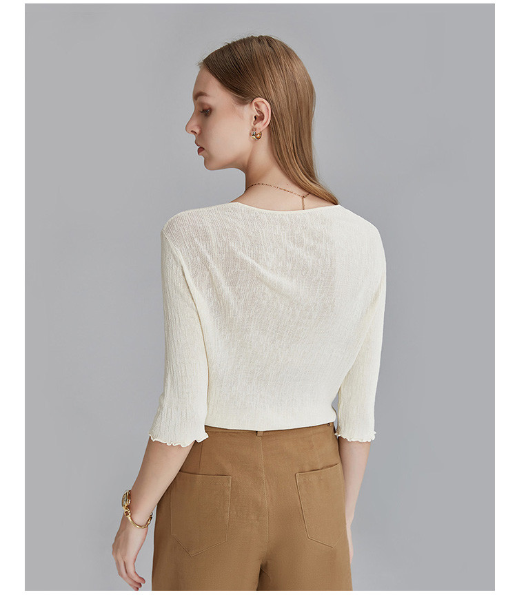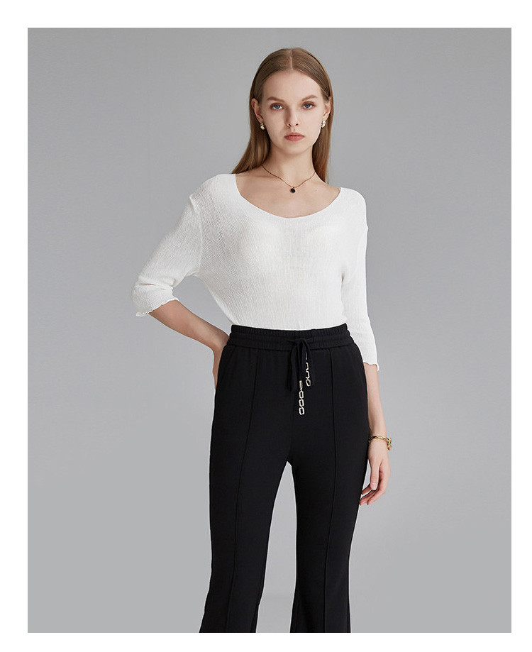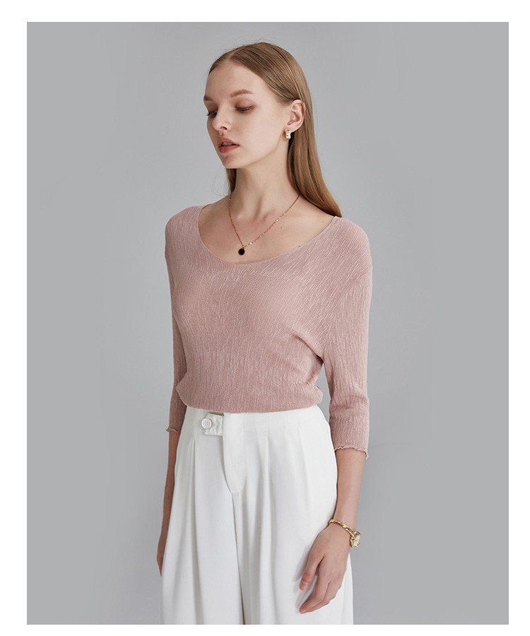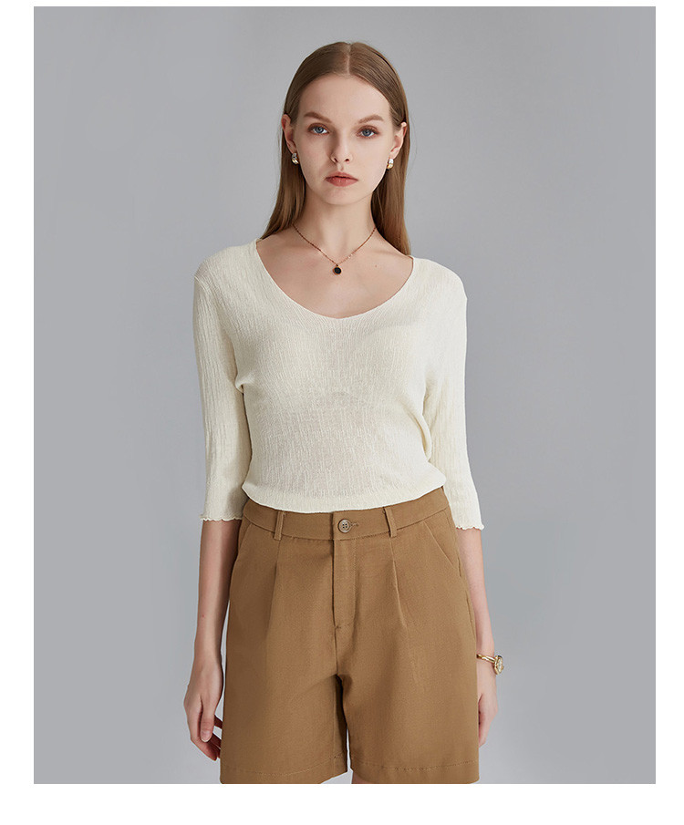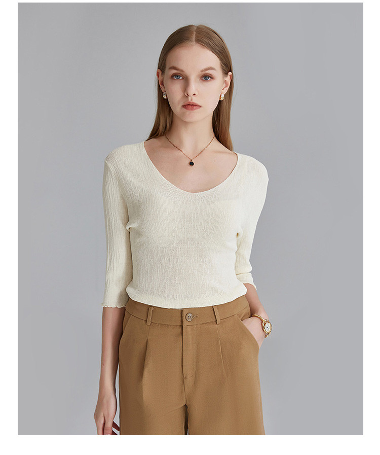 商品名称:春秋新款时尚木耳边内搭女式薄款简约纯色针织衫百搭七分袖上衣 365791