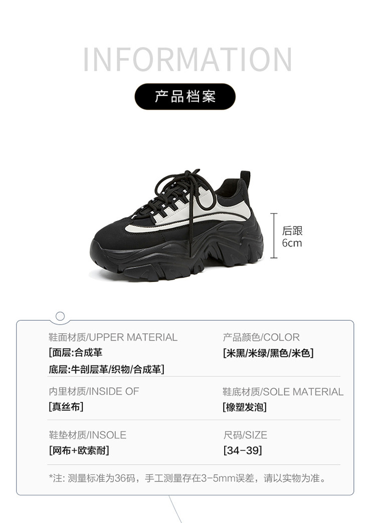 商品名称:【黑白撞色】厚底运动鞋春秋百搭跑步鞋女运动休闲鞋子老爹鞋女鞋 896320