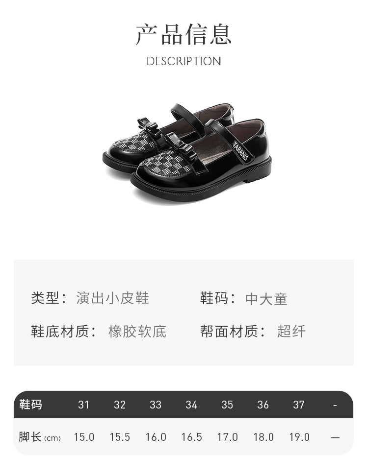 商品名称:秋季款儿童皮鞋时尚棋盘格软底演出演出鞋中大童单鞋女童公主鞋 424599