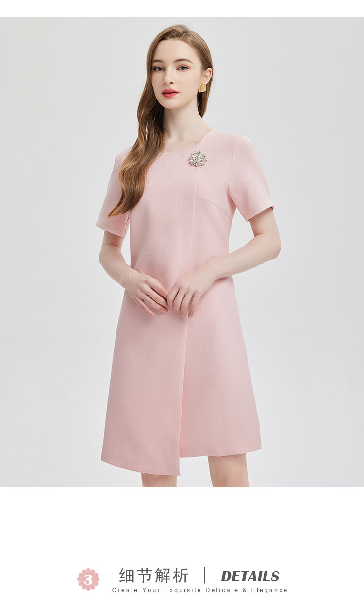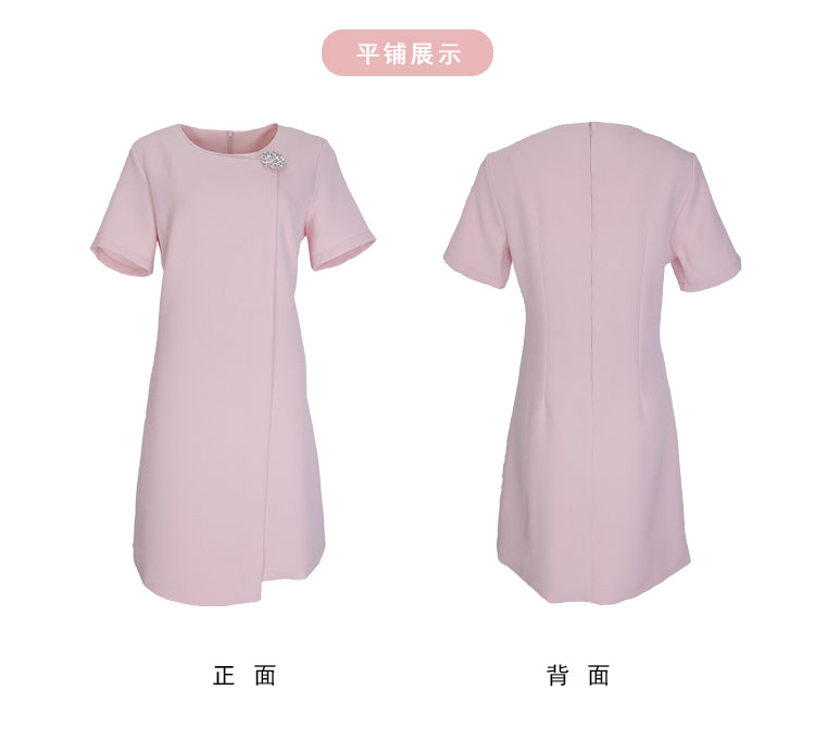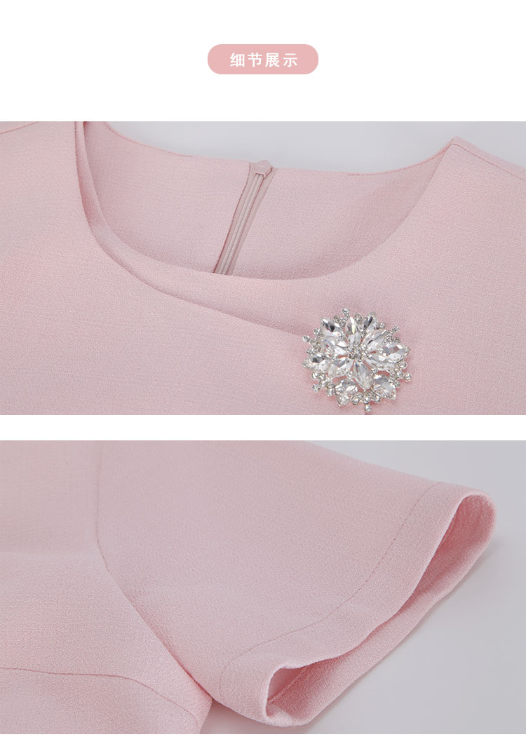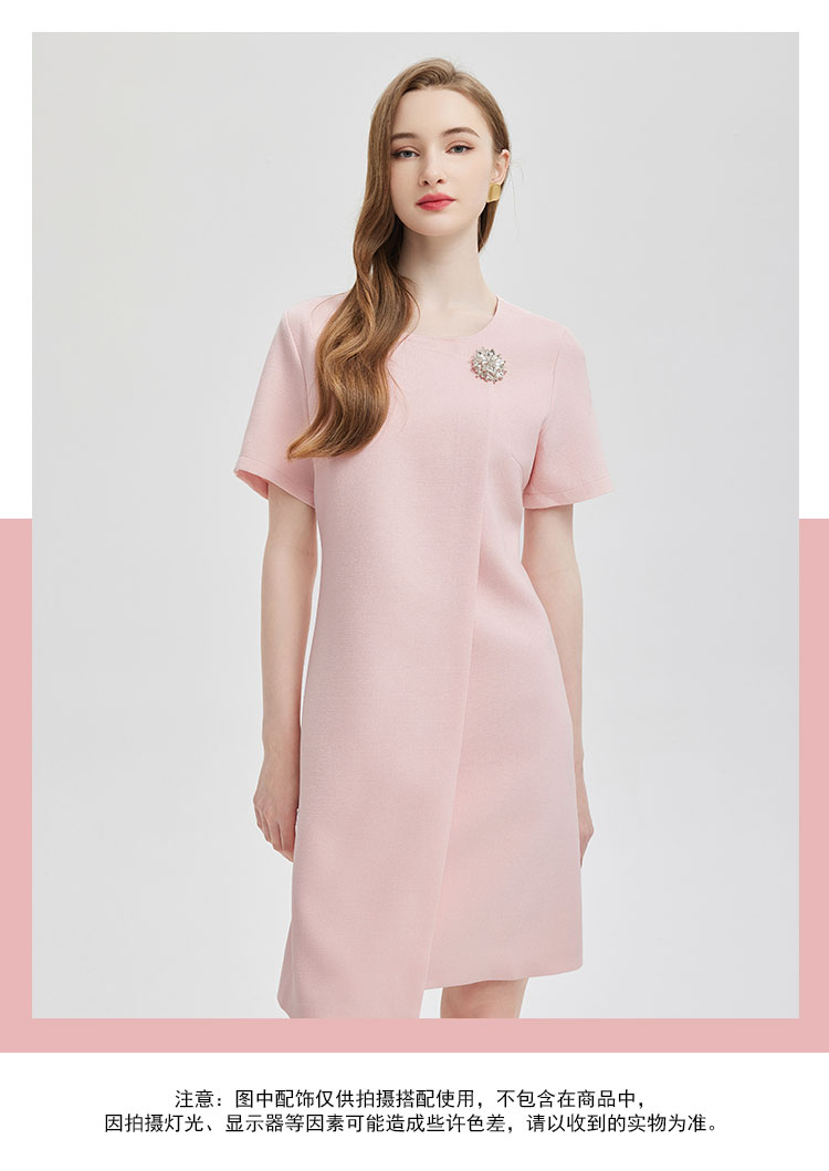 商品名称:简约气质白领通勤不对称搭片设计水钻装饰扣高级显高显瘦连衣裙 645983