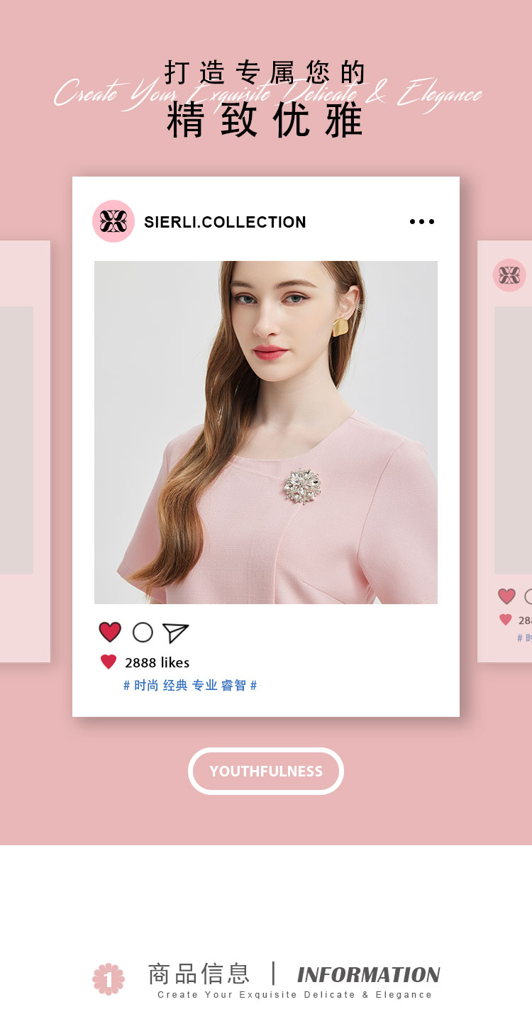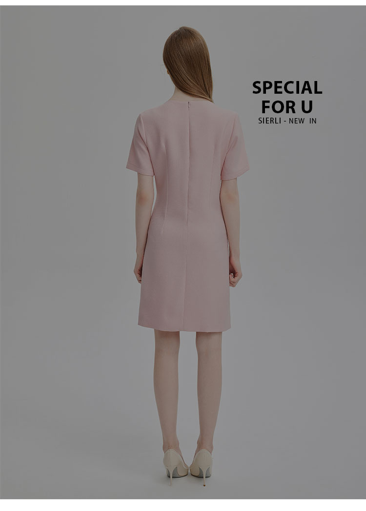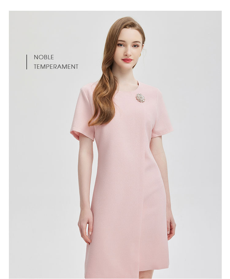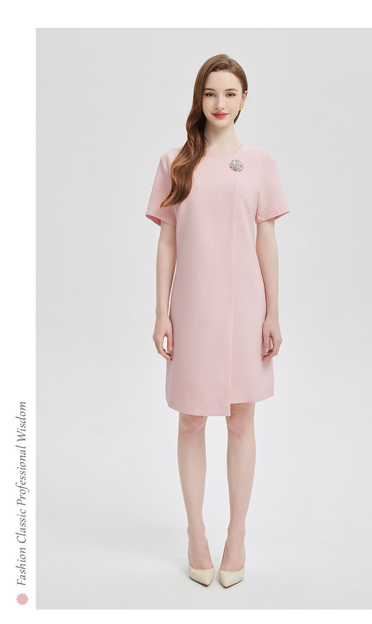 商品名称:简约气质白领通勤不对称搭片设计水钻装饰扣高级显高显瘦连衣裙 645983
