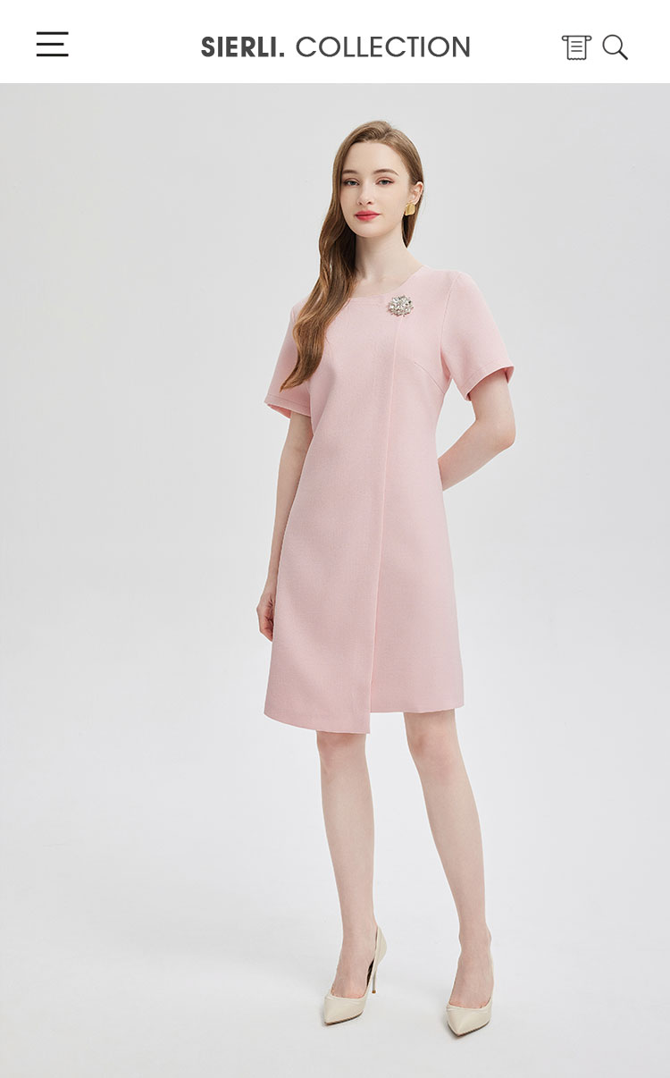 简约气质白领通勤不对称搭片设计水钻装饰扣高级显高显瘦连衣裙 645983