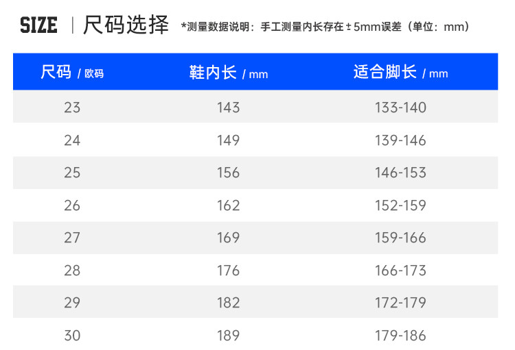 鞋内长(mm)