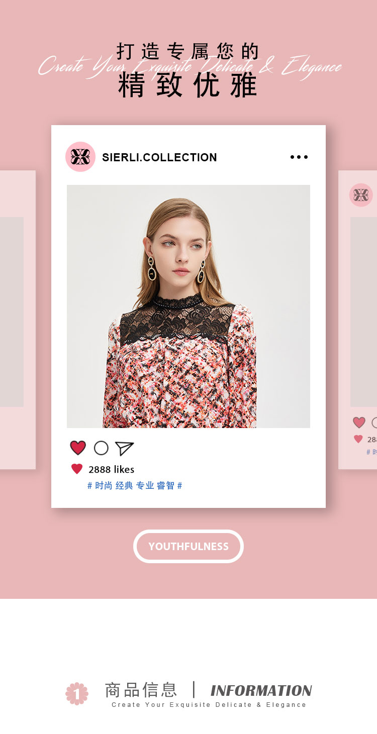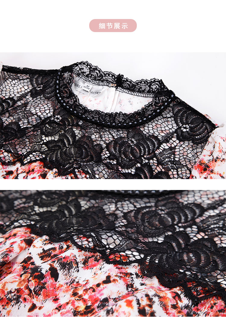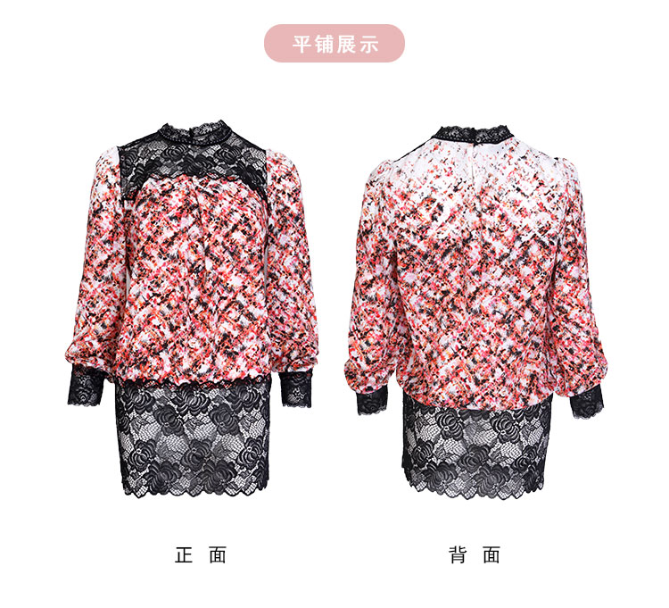 商品名称:春季浪漫碎花印花袖口领口下摆蕾丝拼接温柔气质上衣 080543