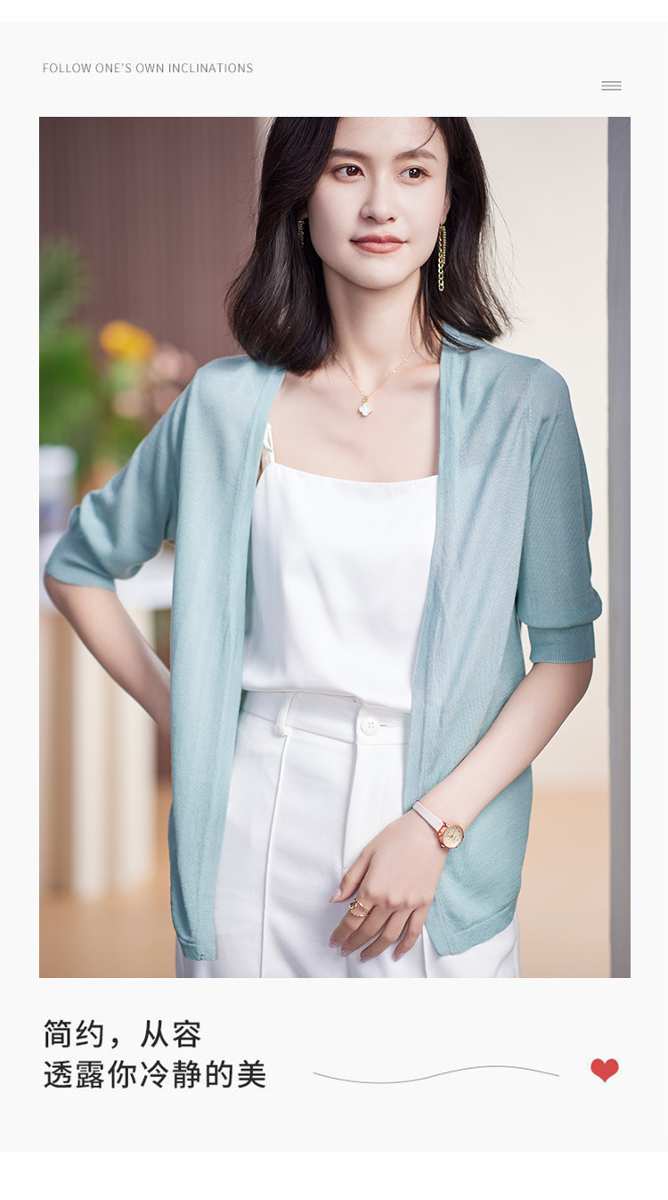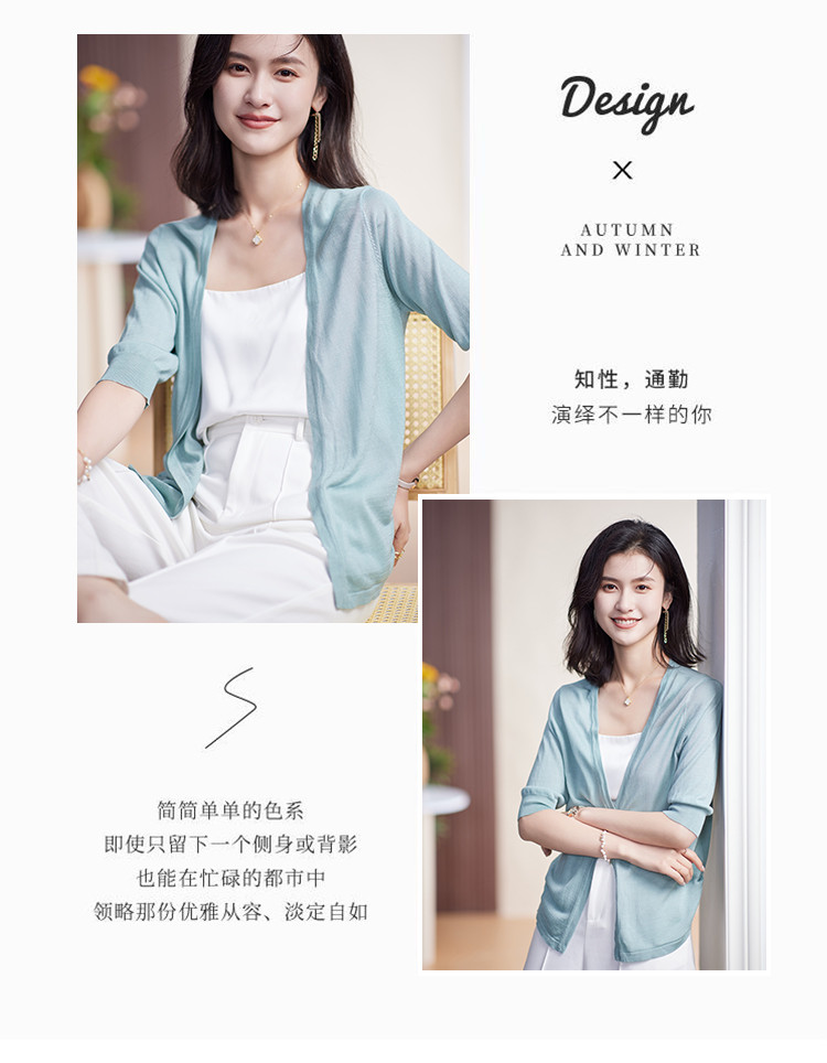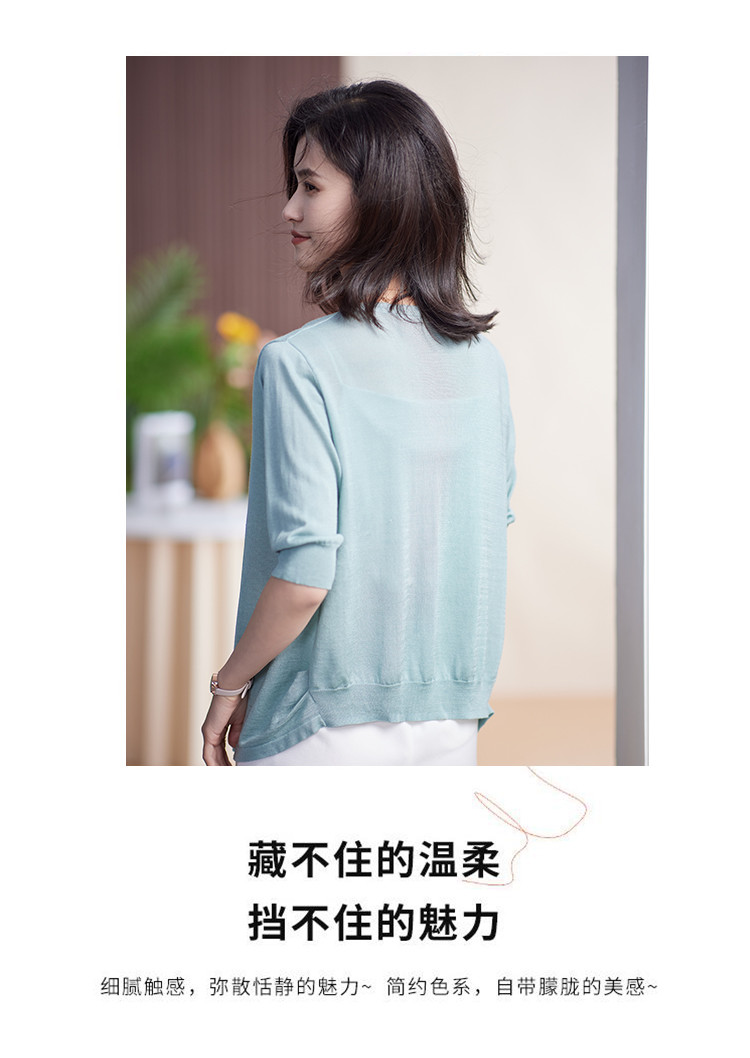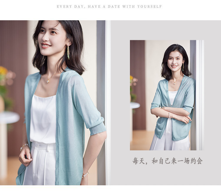 商品名称:【含桑蚕丝含莱赛尔】夏季外套女薄款披肩外搭镂空空调衫外套女夏 268575