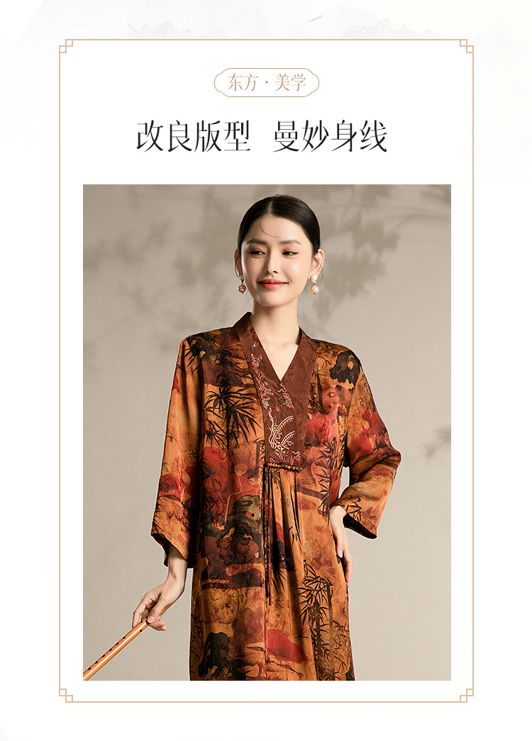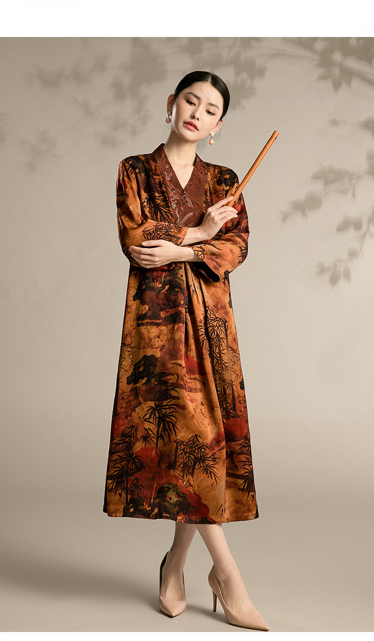 商品名称:复古气质夏季七分袖连衣裙中老年女装印花连衣裙 051551