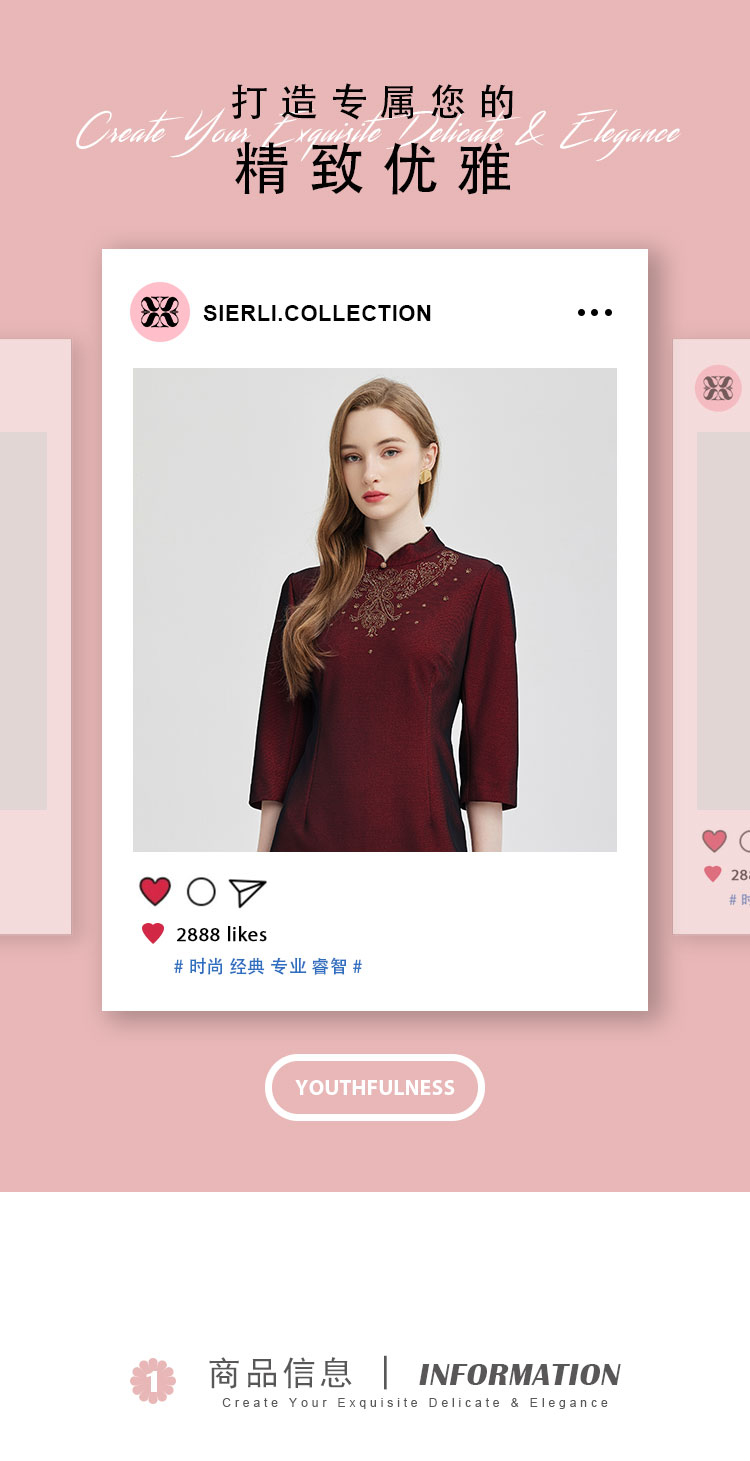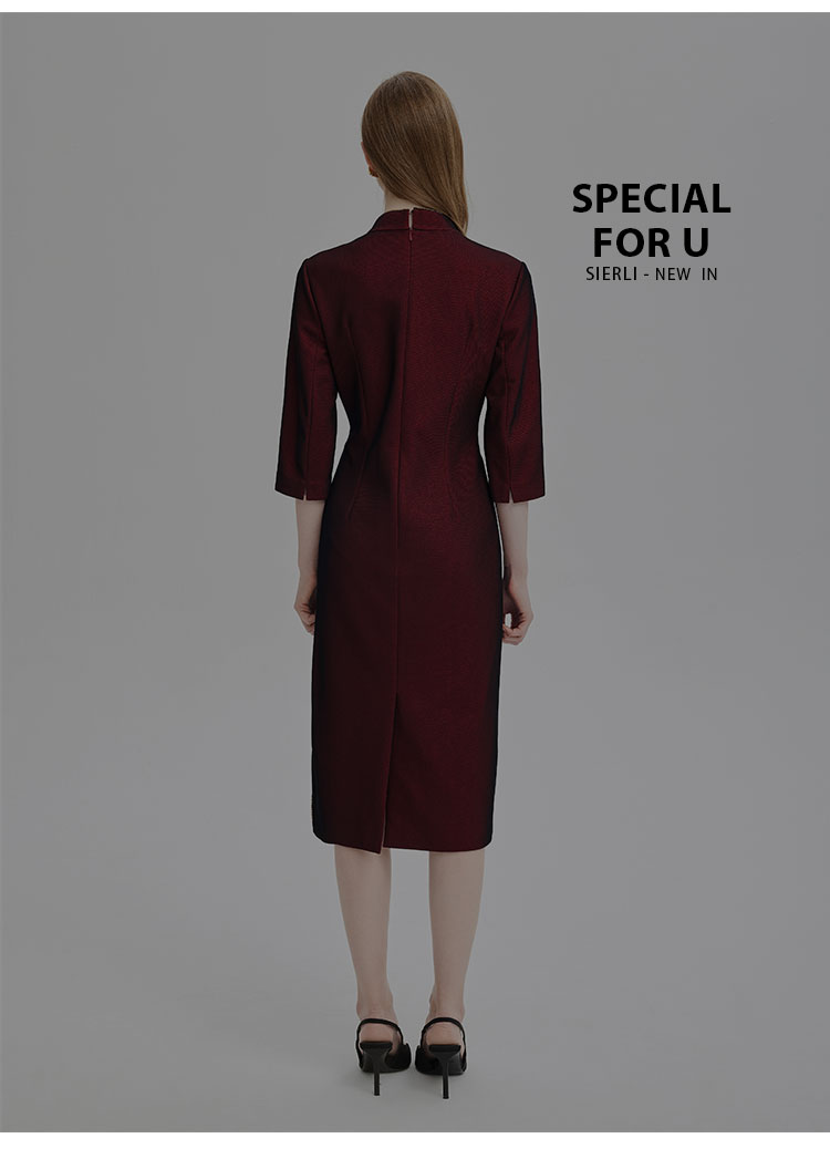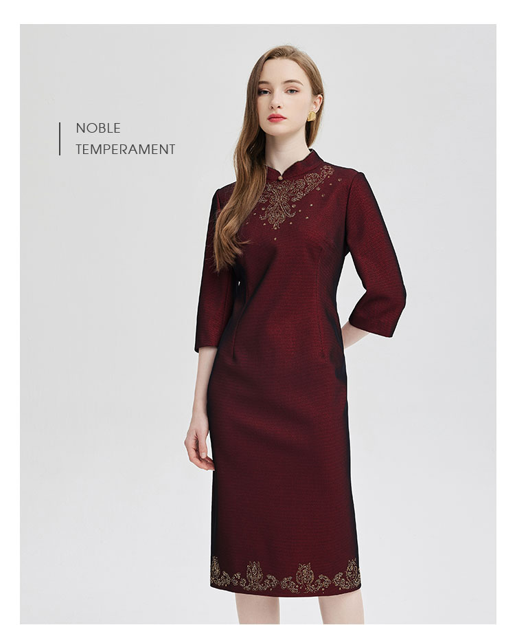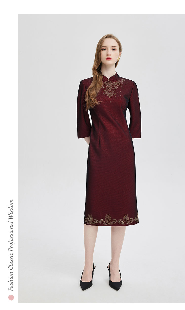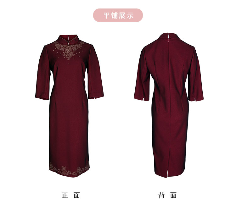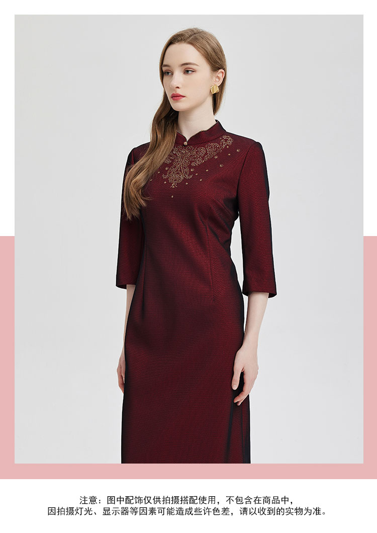 商品名称:2024精致小克拉钻镶嵌工艺改良旗袍双色效果柔软宴会礼服连衣裙 115359