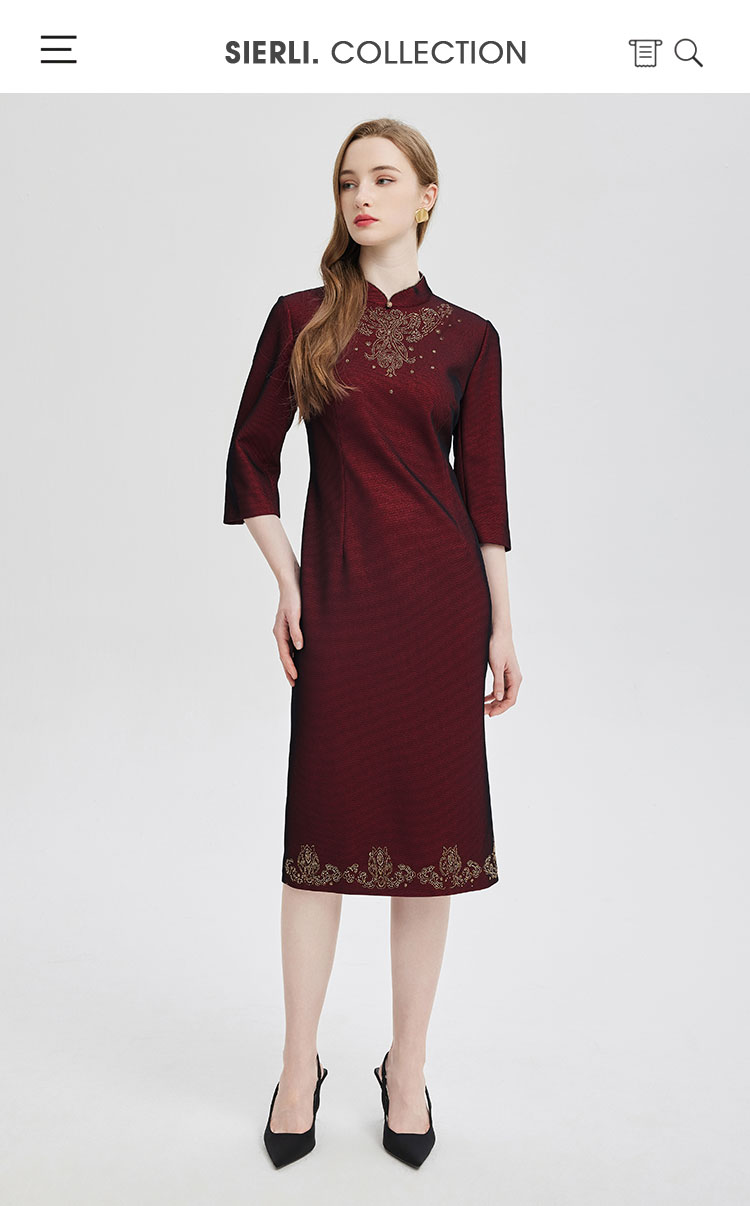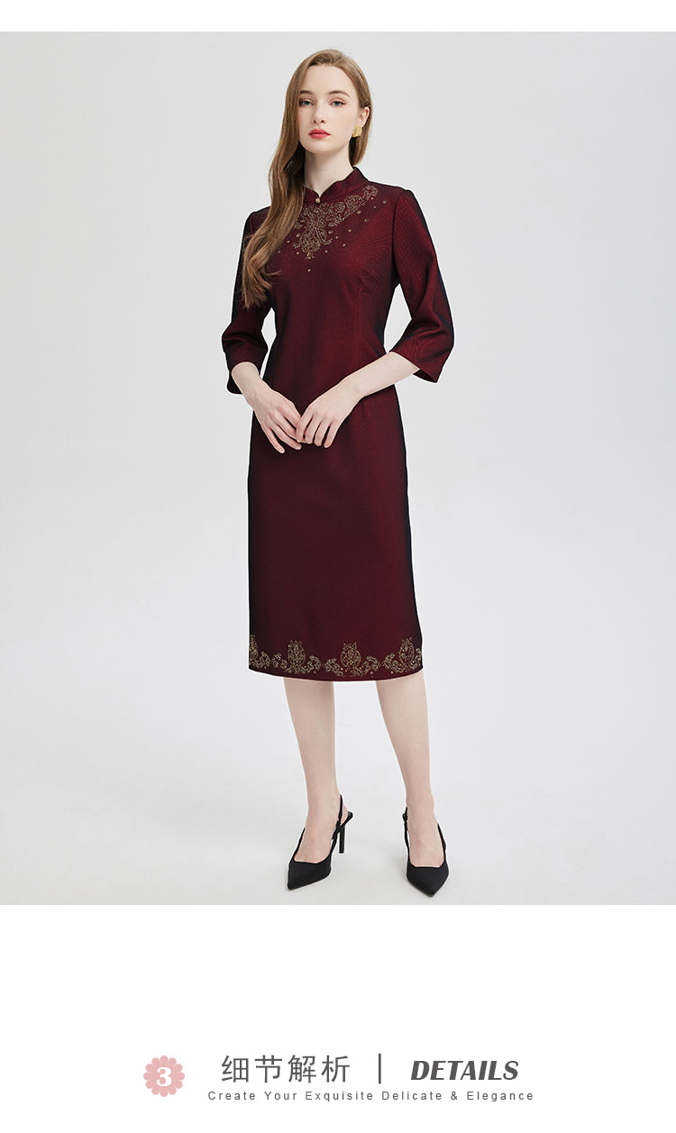 2024精致小克拉钻镶嵌工艺改良旗袍双色效果柔软宴会礼服连衣裙 115359