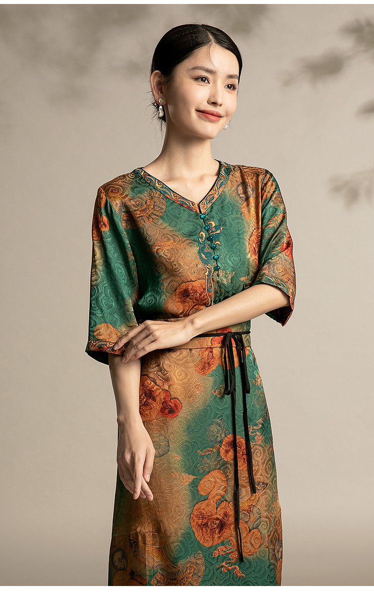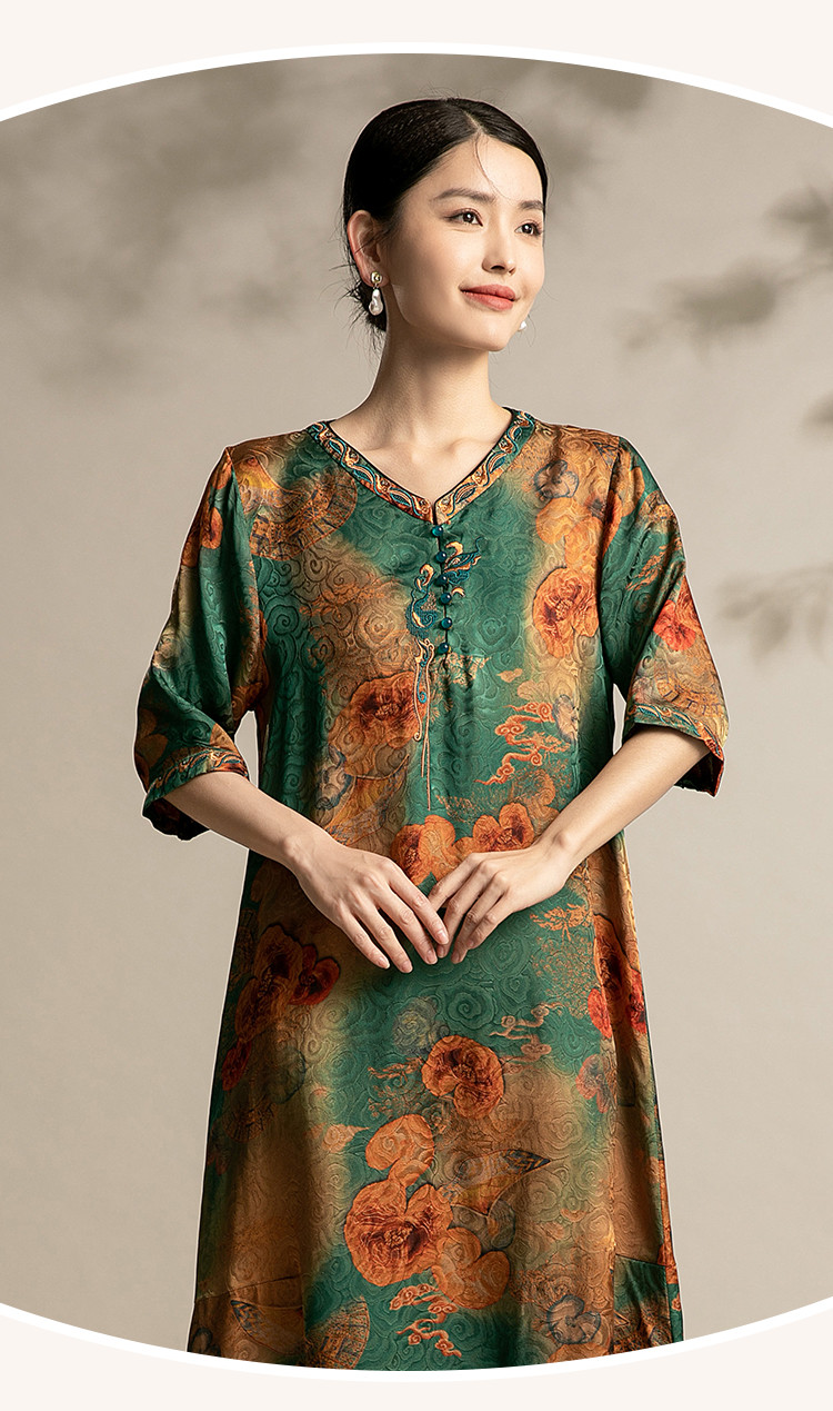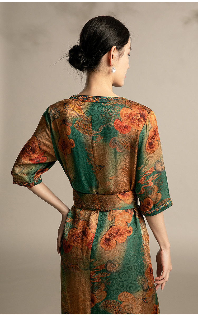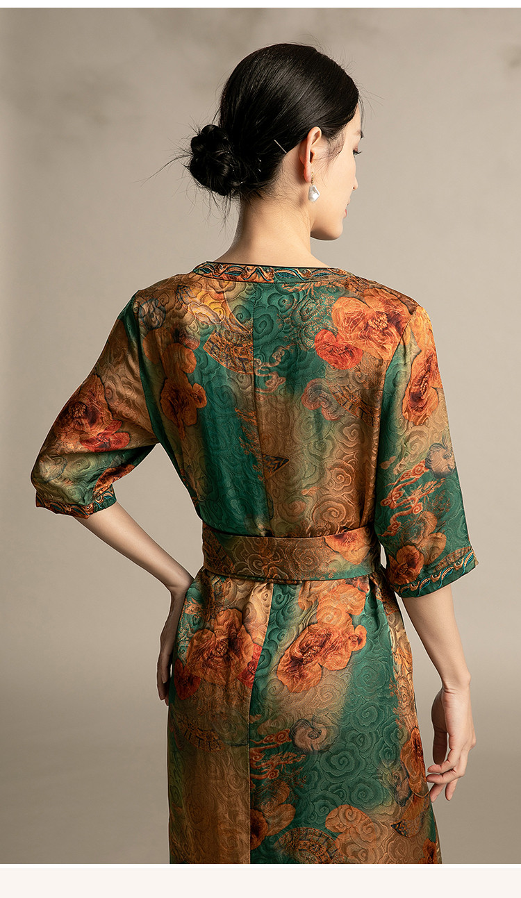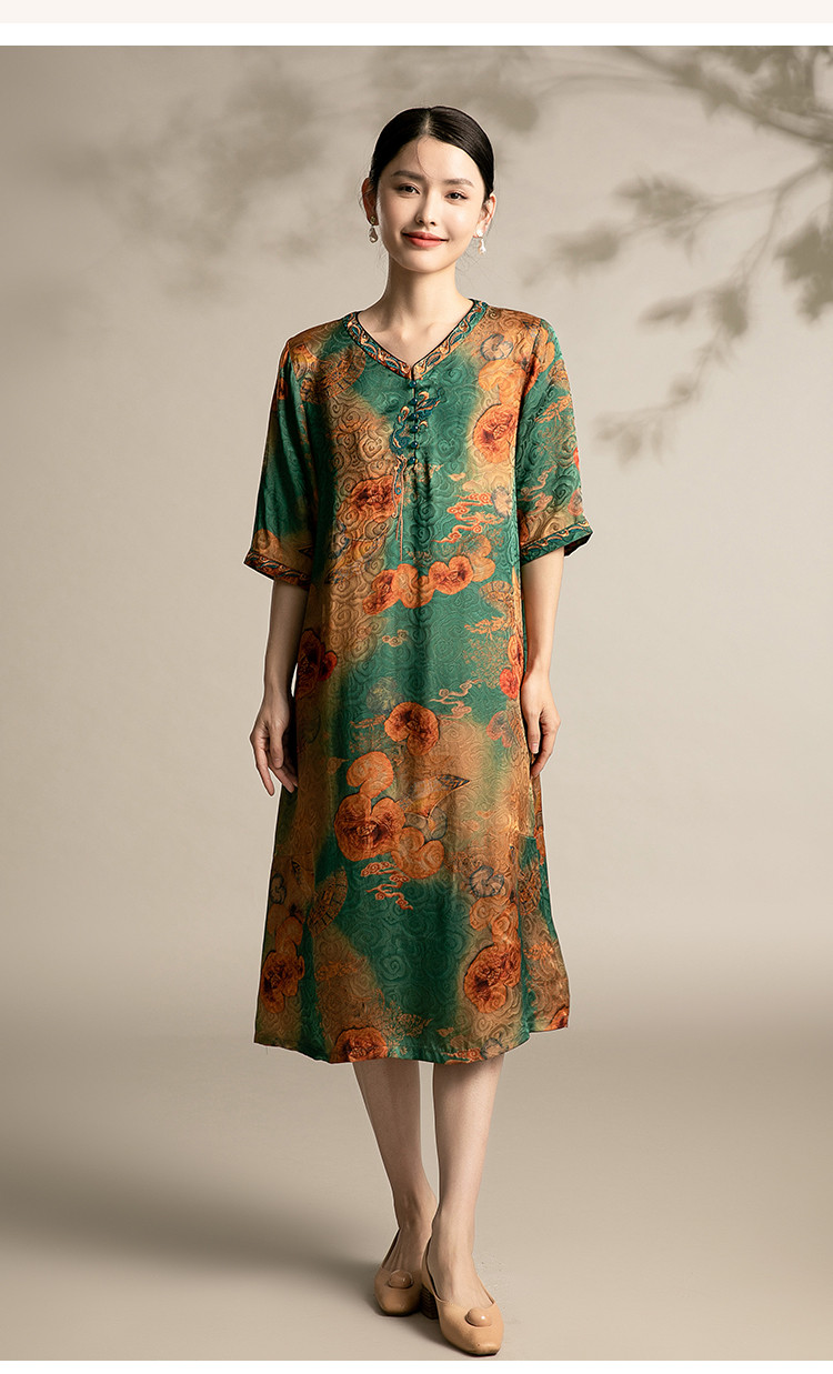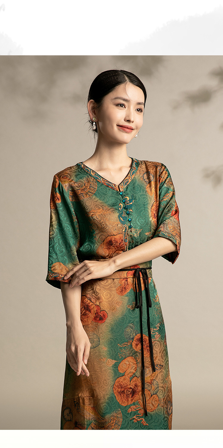 商品名称:春夏休闲气质高贵系带显瘦中长款舒适宽松连衣裙中年时尚裙子女 863135
