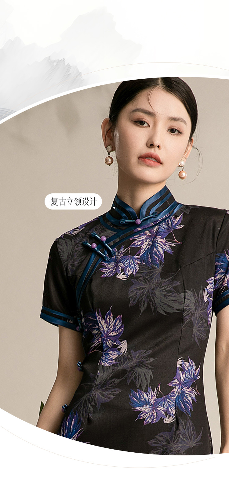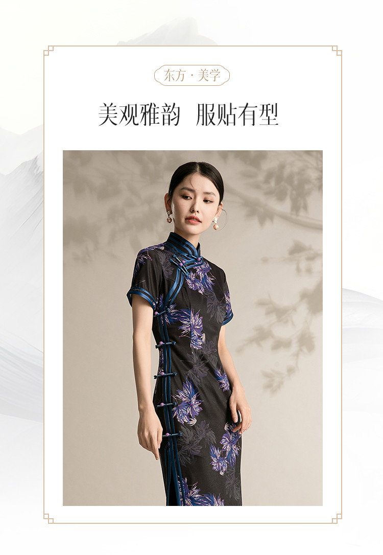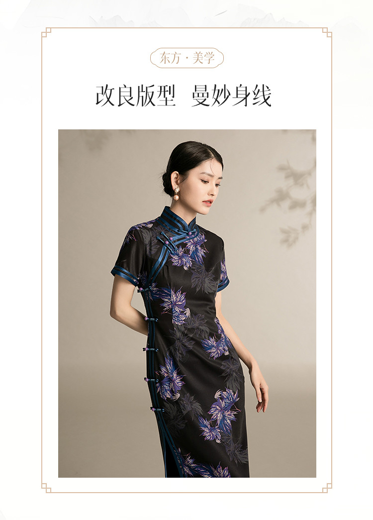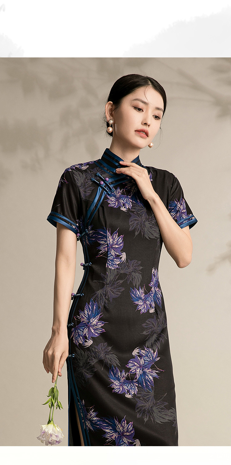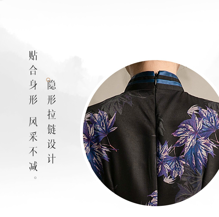 商品名称:黑色高端碎花中国风旗袍中长裙改良复古气质旗袍 132511