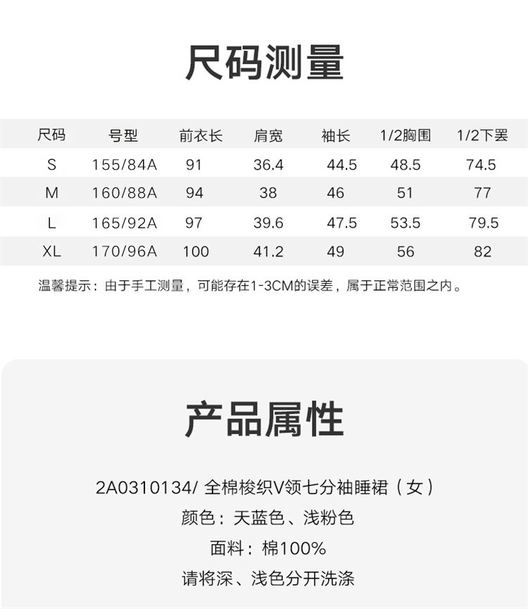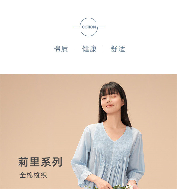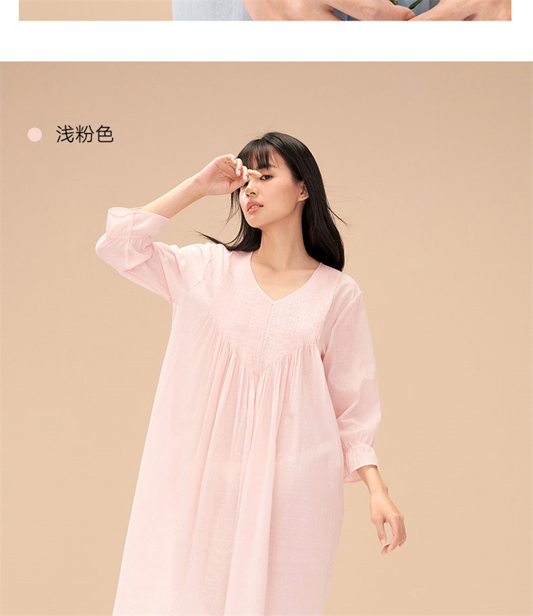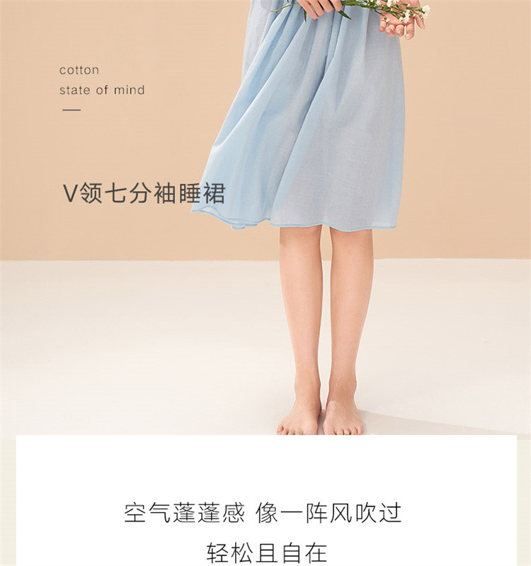 商品名称:【防凸点七分袖睡裙】棉质V领轻薄透气可外穿家居服女睡衣 662811