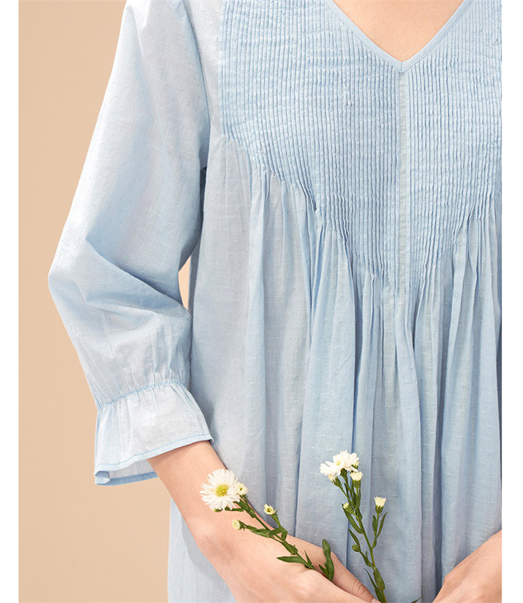 【防凸点七分袖睡裙】棉质V领轻薄透气可外穿家居服女睡衣 662811