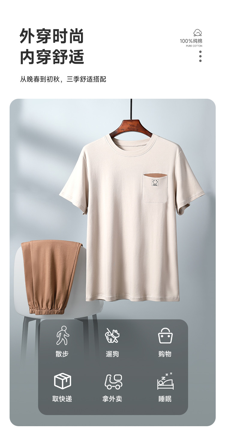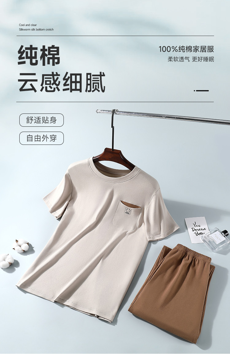 商品名称:【100%棉】纯棉短袖男士睡衣男春夏季薄款可外穿家居服套装 462795