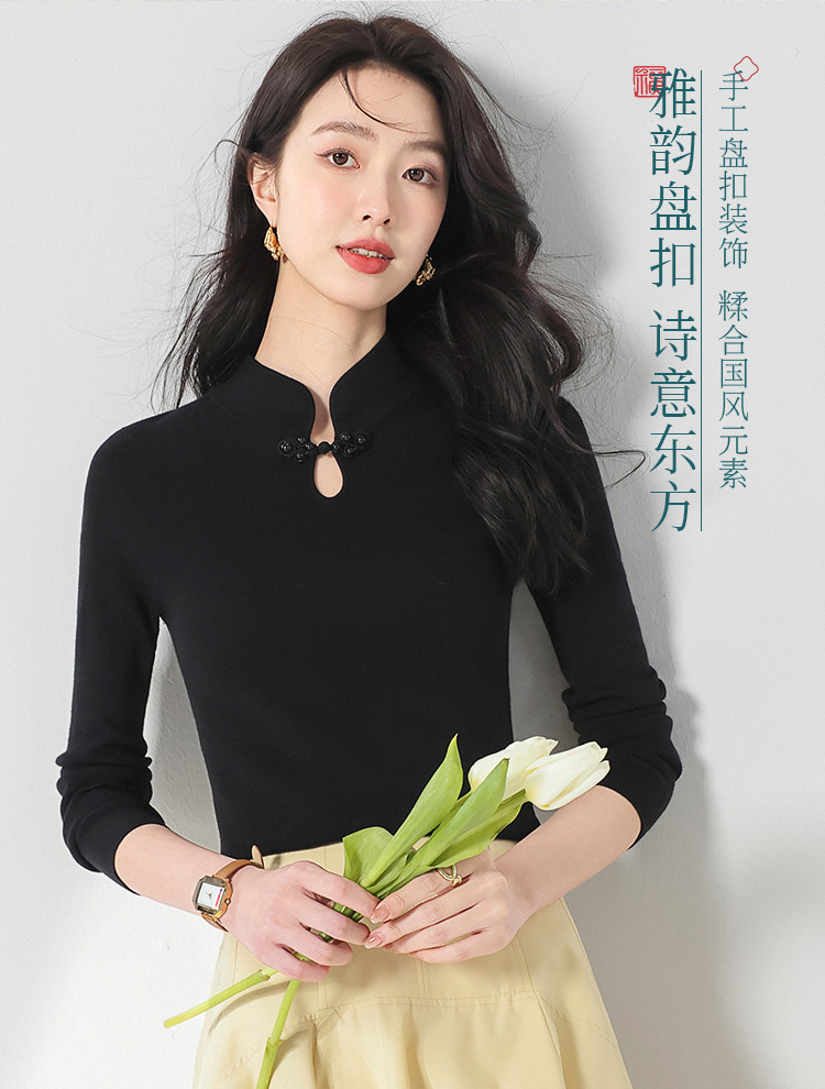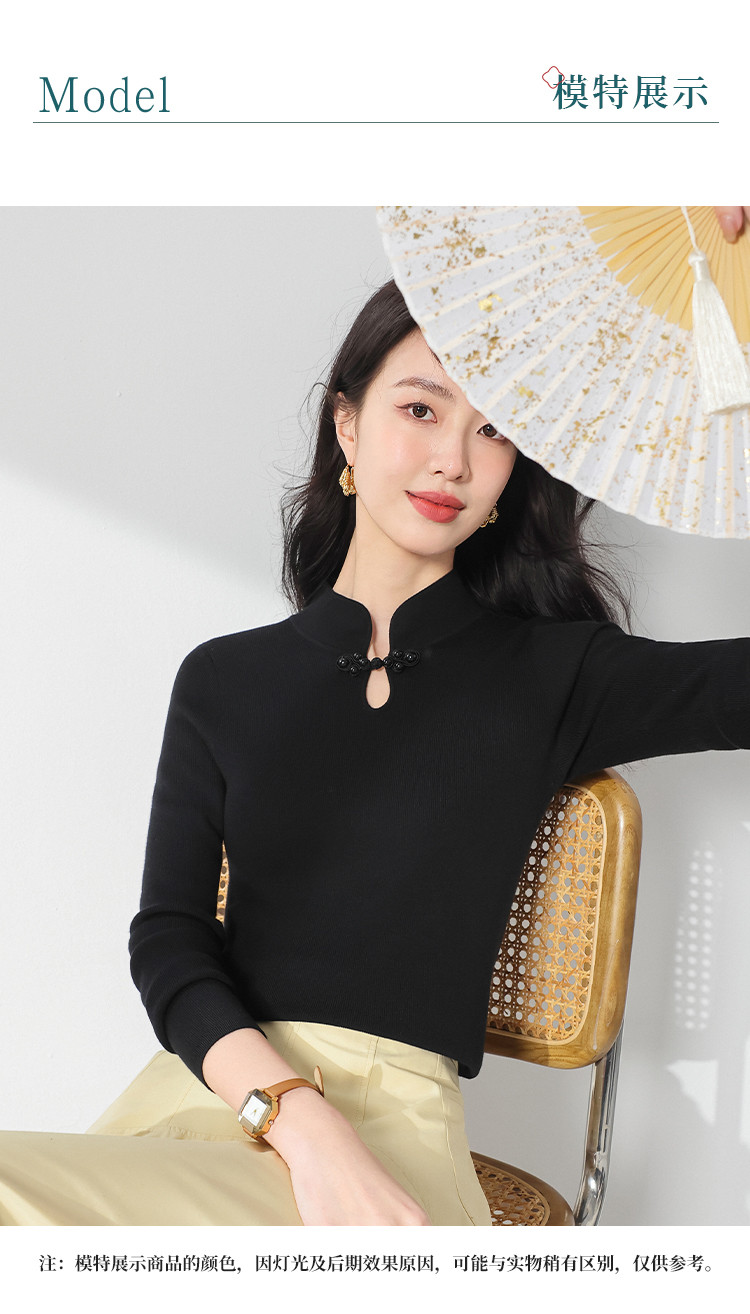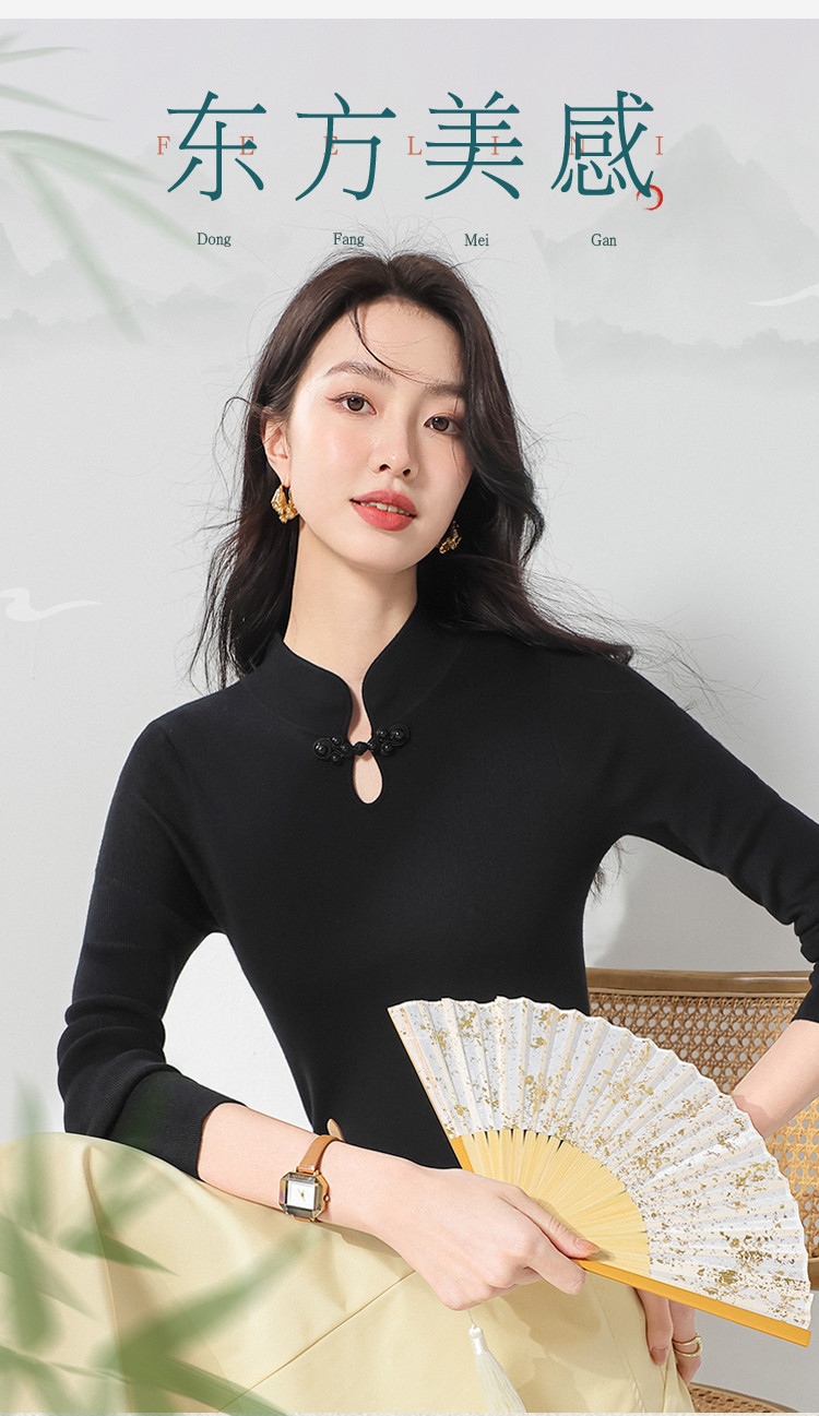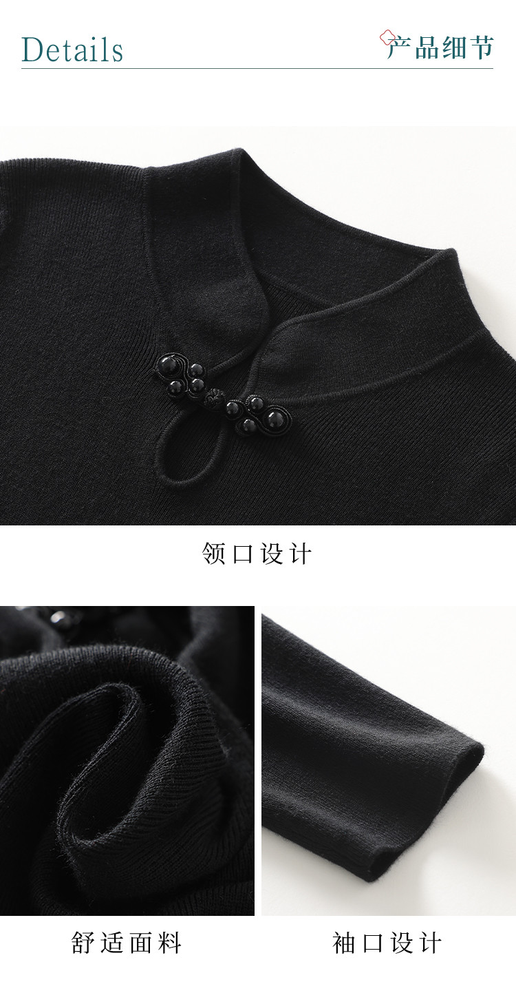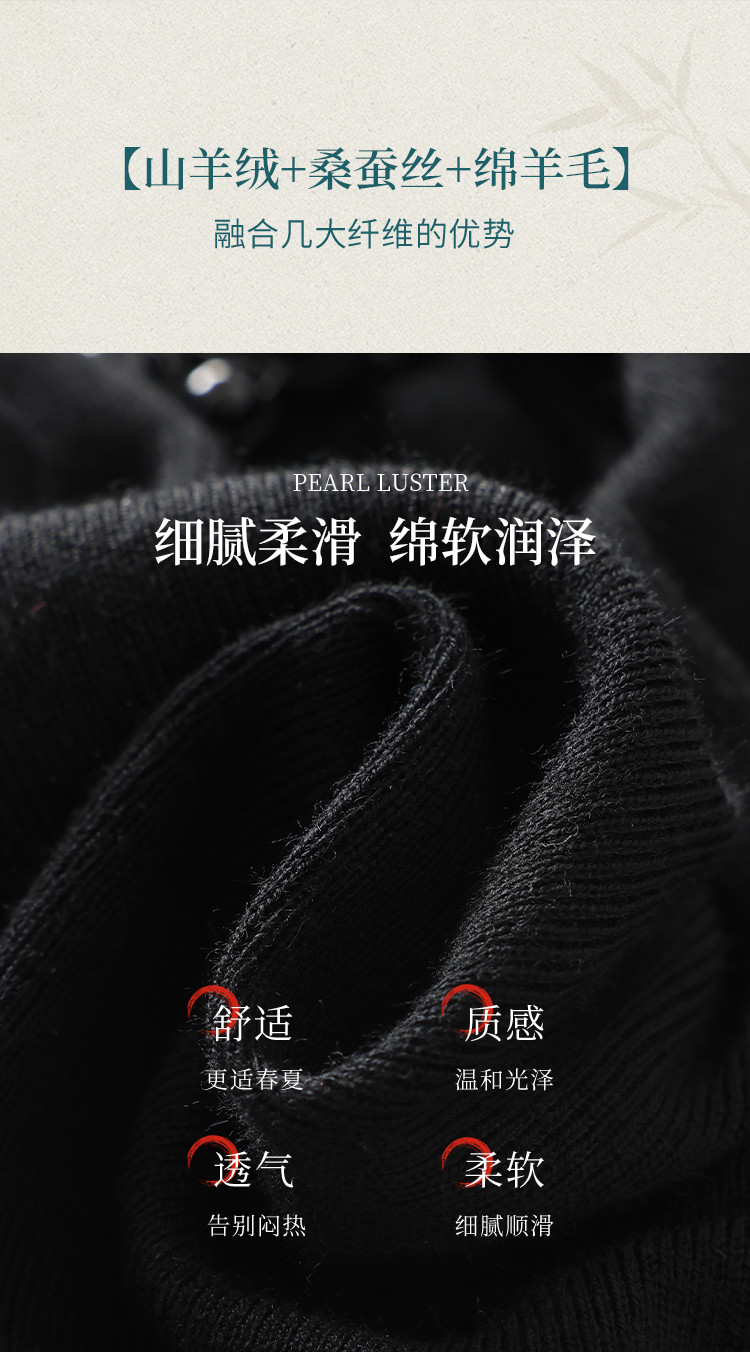 商品名称:国风新中式轻薄透气含桑蚕丝立领针织打底衫夏款长袖T恤妈妈装 231827