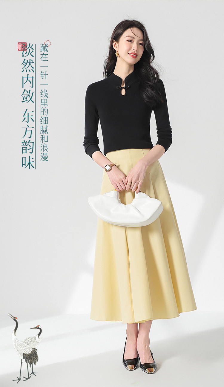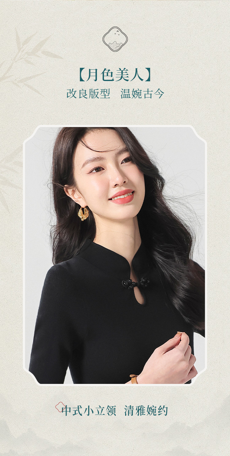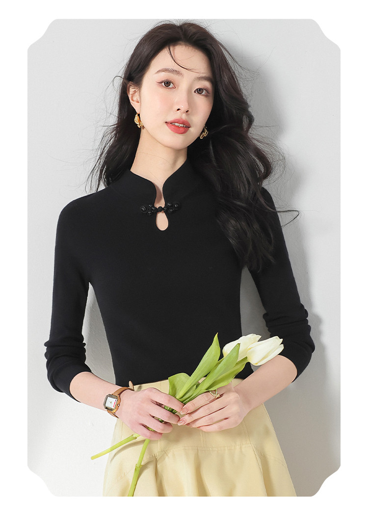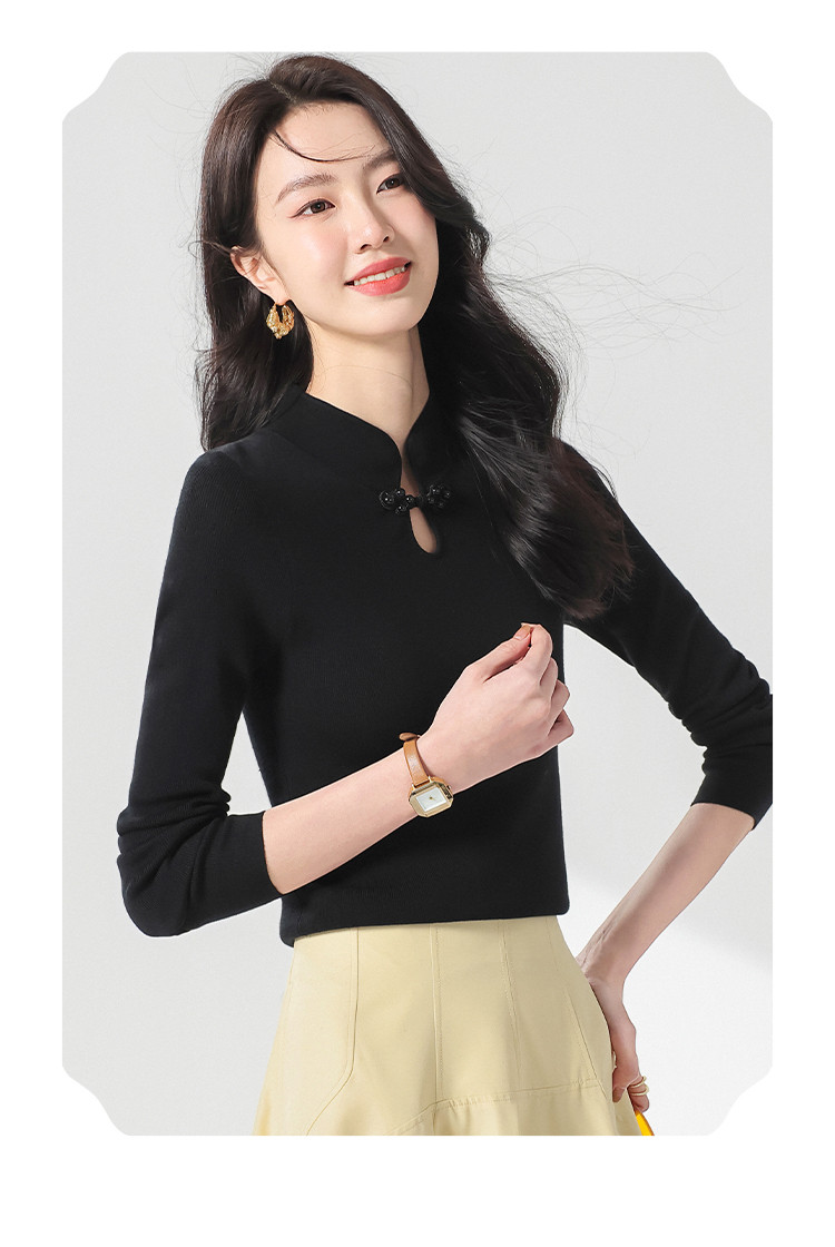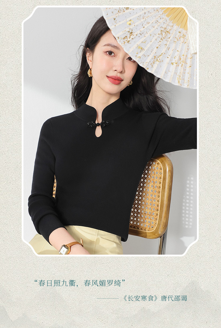 商品名称:国风新中式轻薄透气含桑蚕丝立领针织打底衫夏款长袖T恤妈妈装 231827