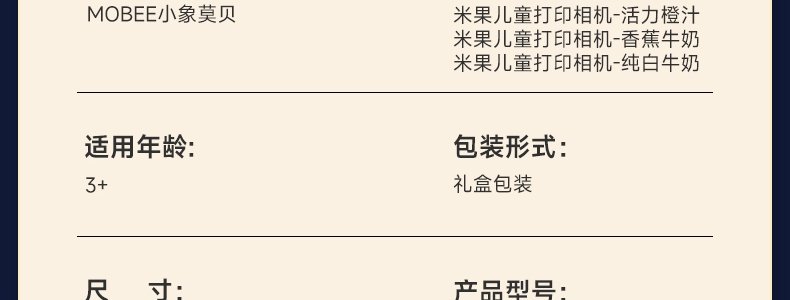 商品名称:小象莫贝(mobee)米果儿童打印相机-黄色