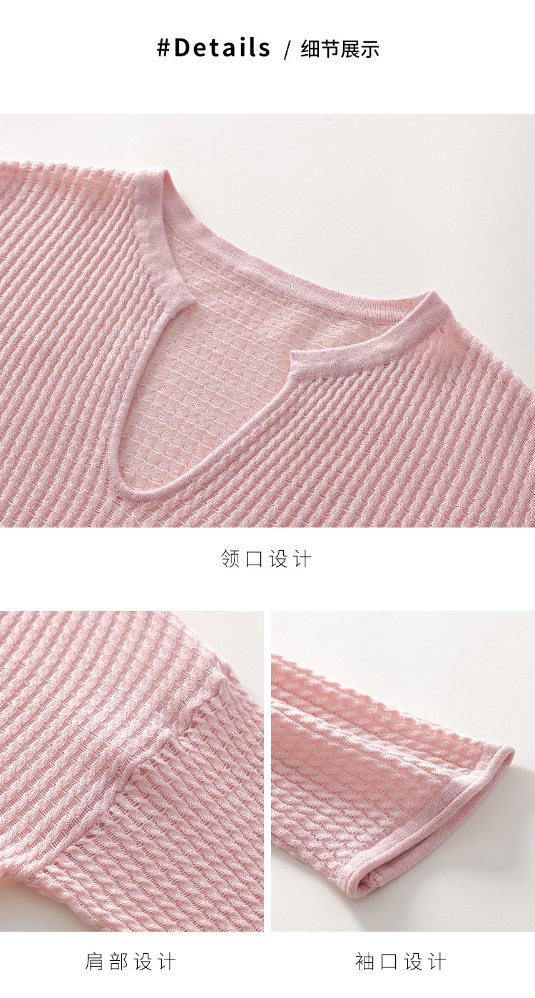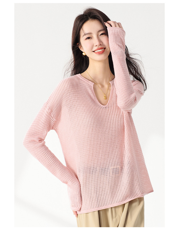 轻薄透气网眼镂空纯色V领长袖羊毛针织衫毛衣罩衫空调衫夏款T恤 677523