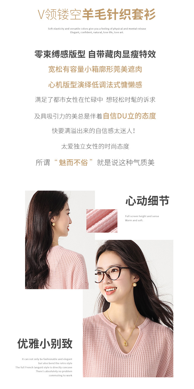 冬毛针织衫V领套头毛衫女 098699