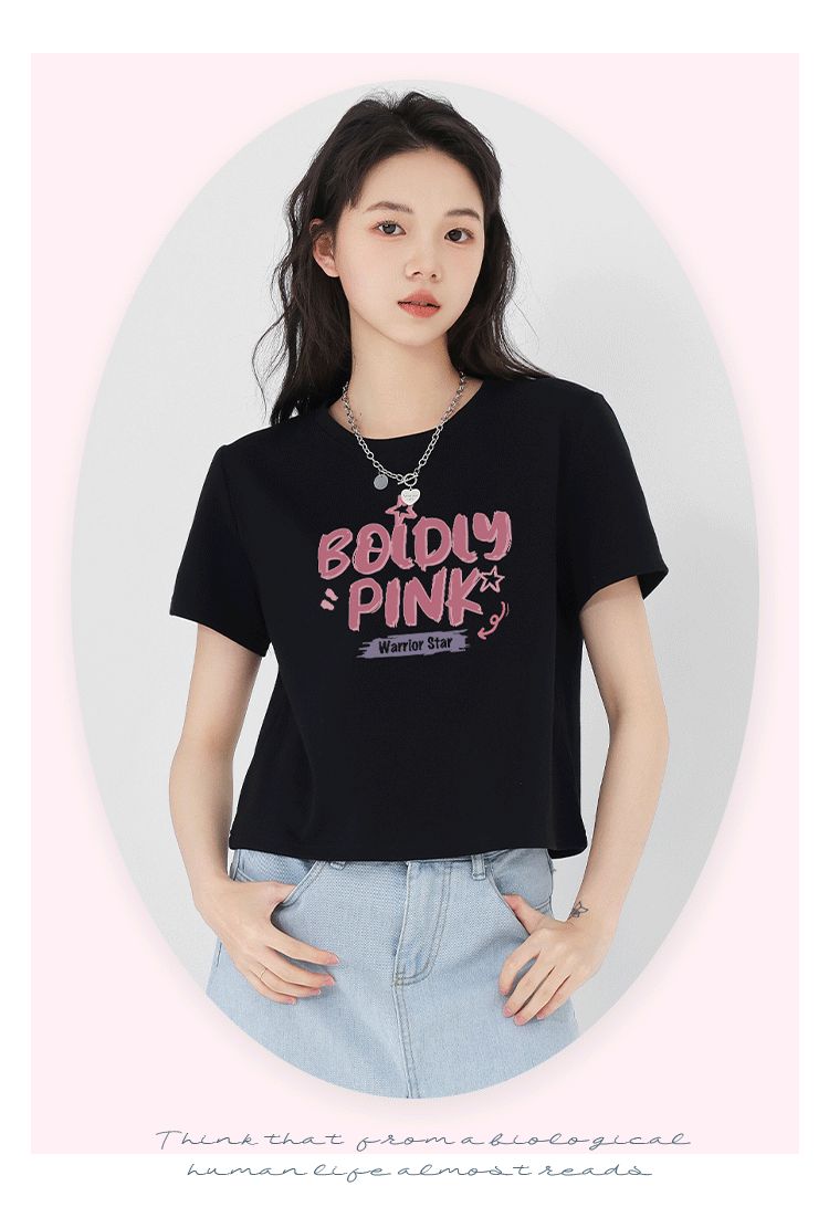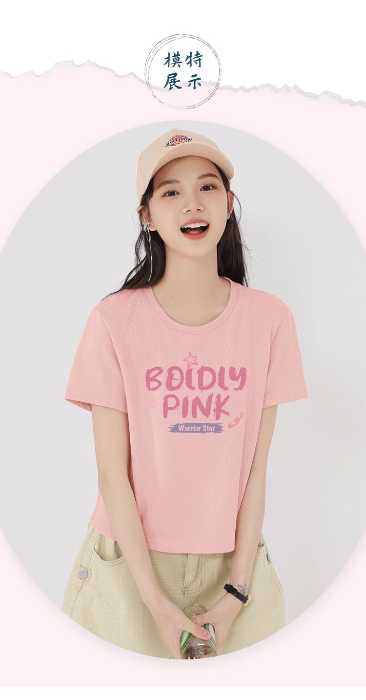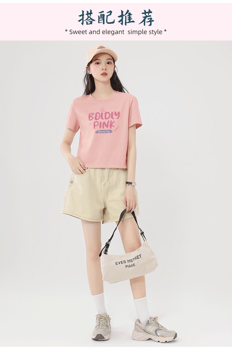 【女装100%棉】正肩短袖T恤女夏设计感显高辣妹露脐短款上衣 398995