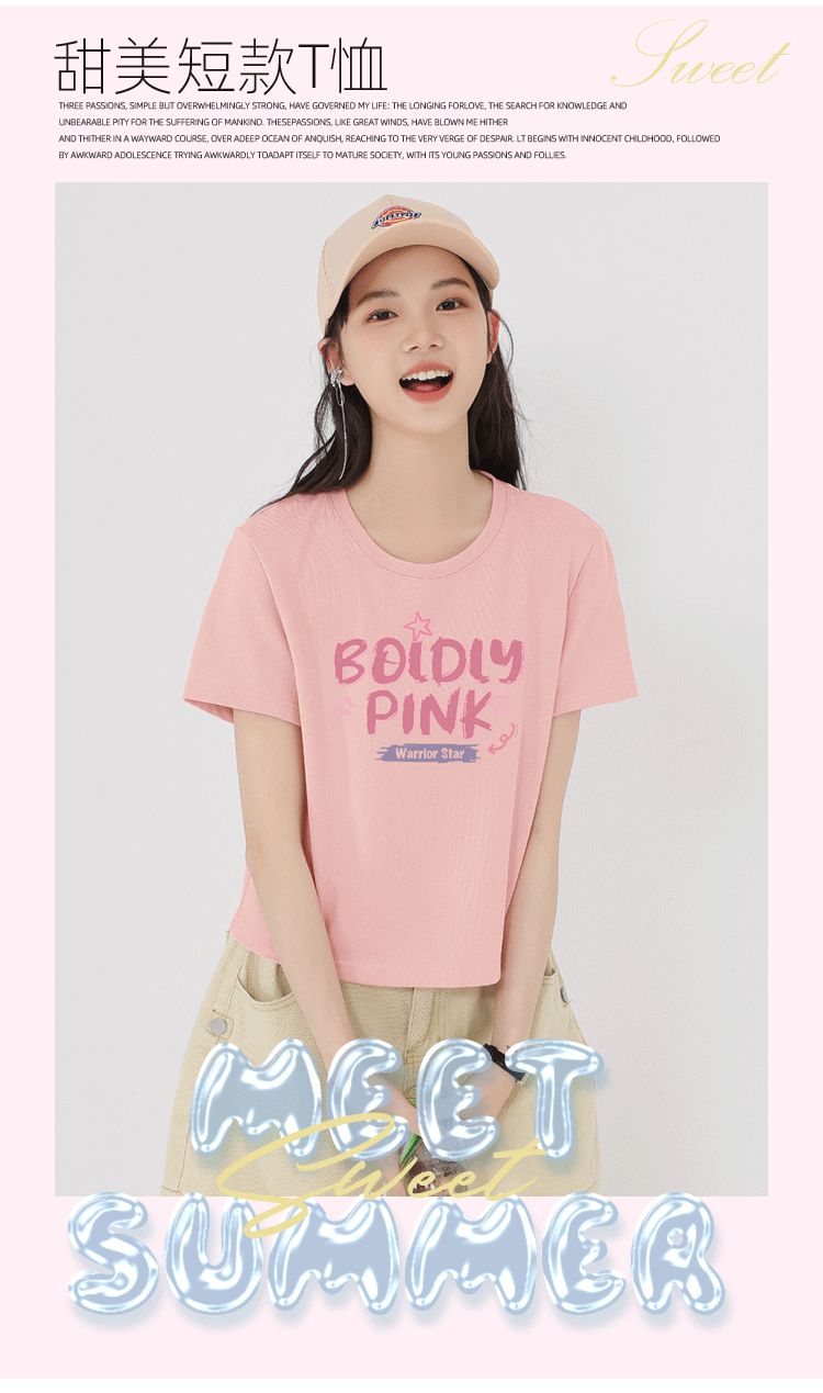 商品名称:【女装100%棉】正肩短袖T恤女夏设计感显高辣妹露脐短款上衣 398995