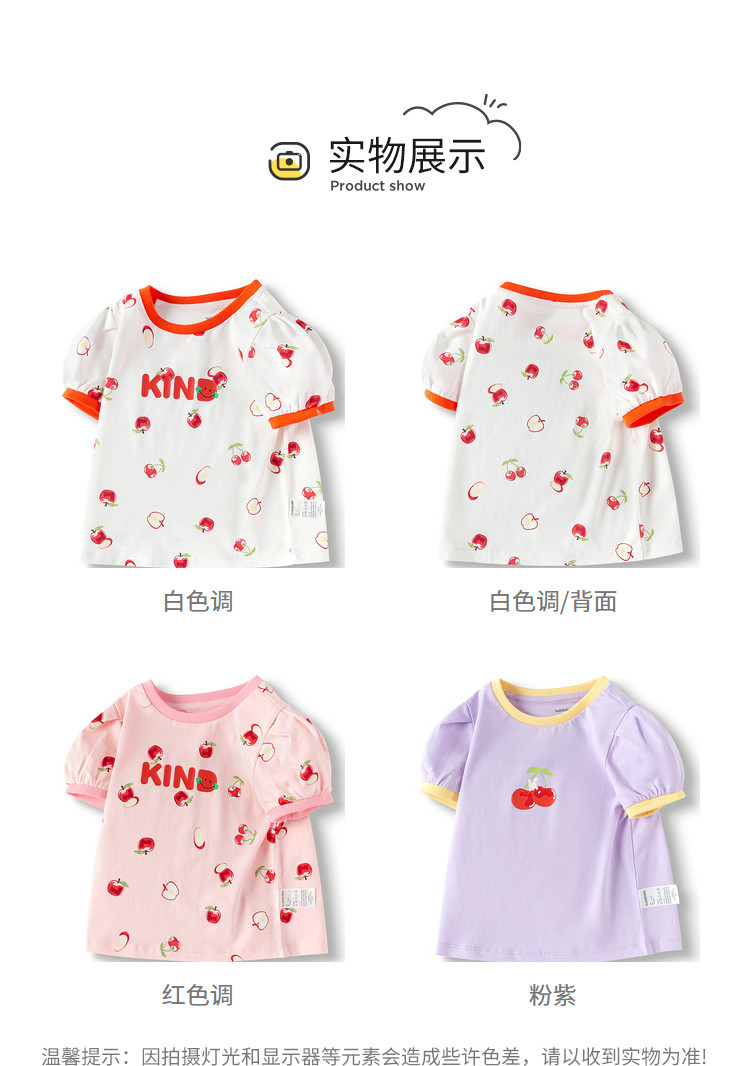 商品名称:纯棉泡泡袖儿童T恤童装女童短袖夏季婴幼上衣宝宝薄 898117