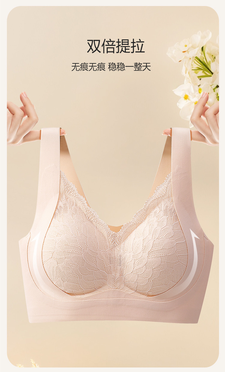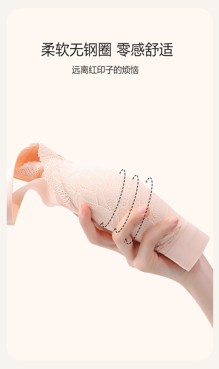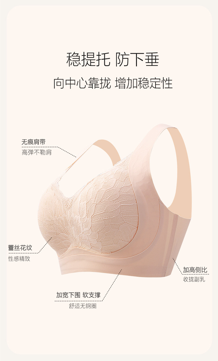 商品名称:【轻奢蕾丝】裸感轻盈高弹聚拢侧收防下垂无钢圈美背内衣女文胸罩 634206
