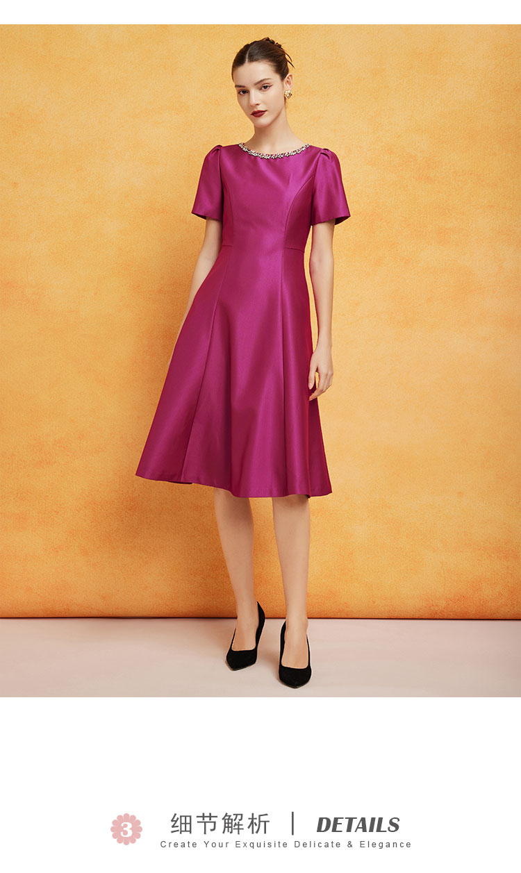 法式优雅丝毛小礼服收腰放摆显高显瘦浪漫连衣裙 217695