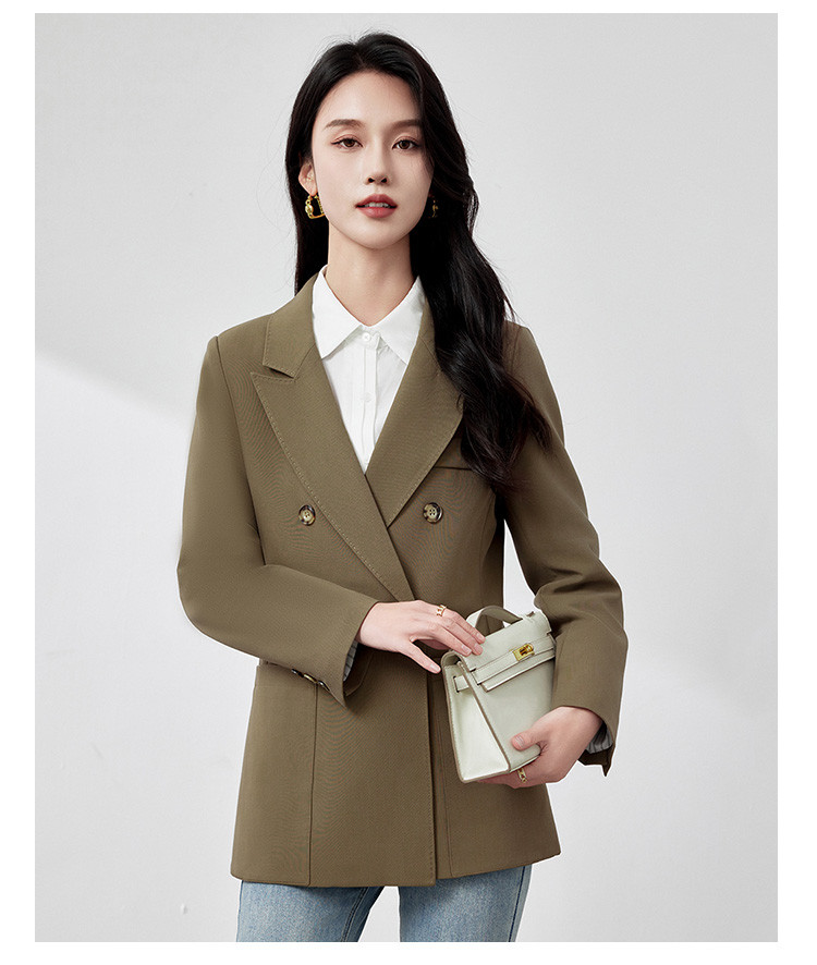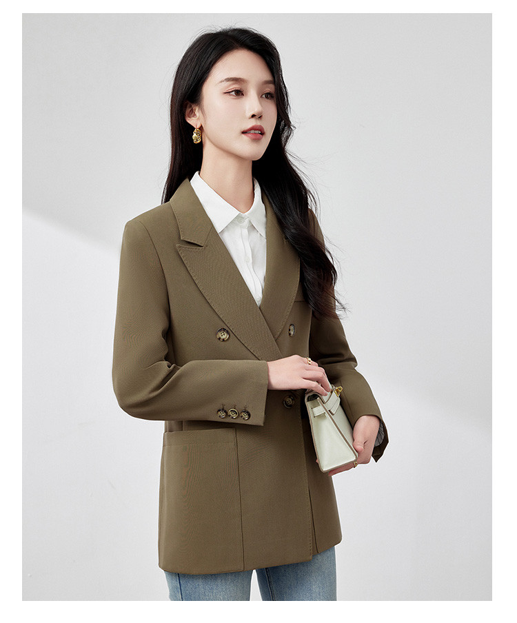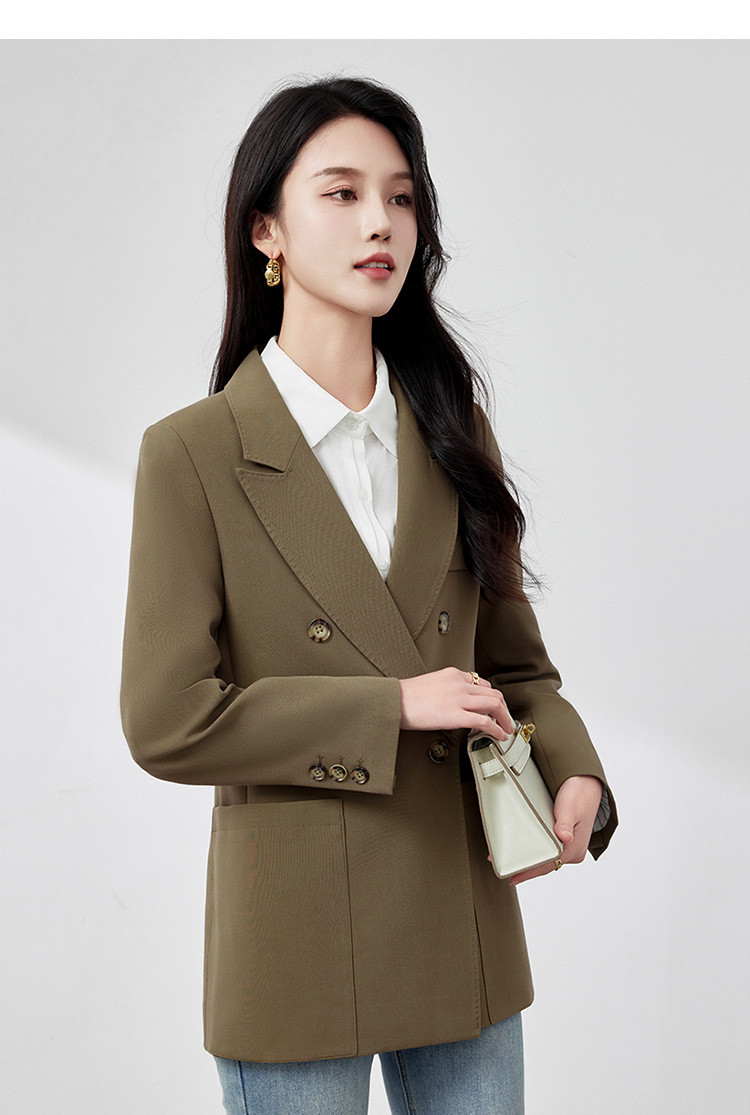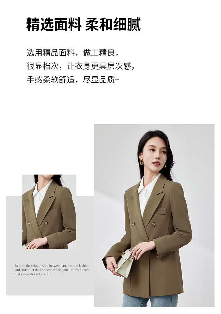 春秋日常通勤休闲百搭西装女职业知性时尚双排扣西服外套 059295
